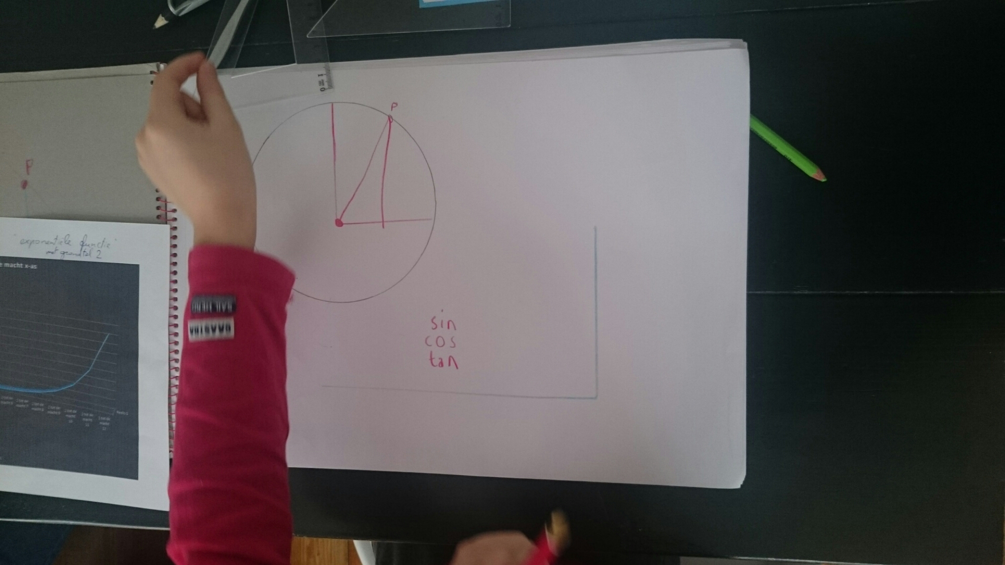 Simon is unstoppable now. On some days, like yesterday, he does something like 5 or even 6 hours of maths. He is entertaining himself by drawing goniometric circles and trying to figure out the sinus and the cosinus of an angle, or by calculating the area of a shape and saying all the steps he takes out loud in English, or by building a graph of “2 to the power of x”. “Mom, I know what 2 to the power of minus 2 is!”