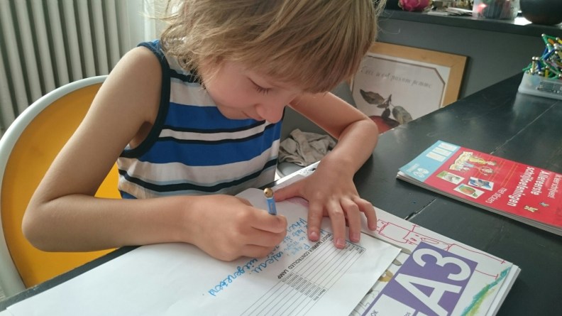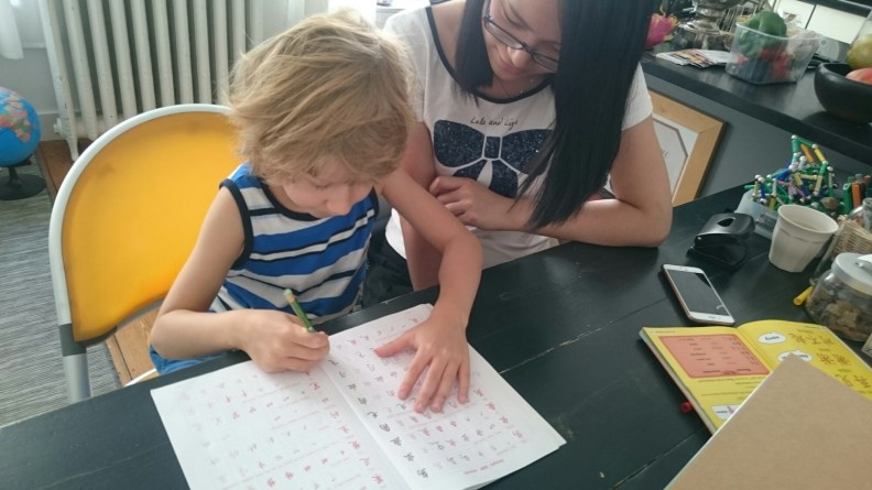 Simon’s been doing a whole lot of writing today. First, a birthday letter for Dad. And then Mandarin characters. Those fingers must be aching now!
