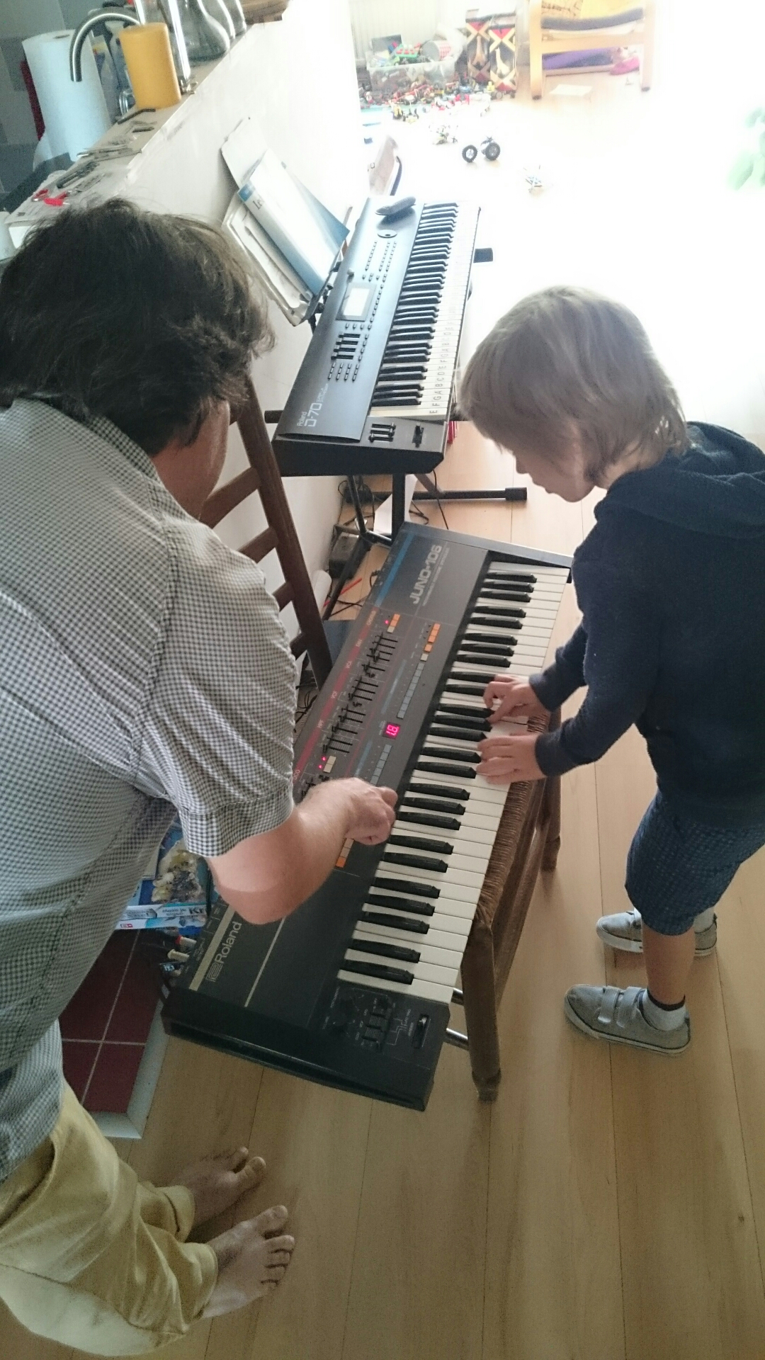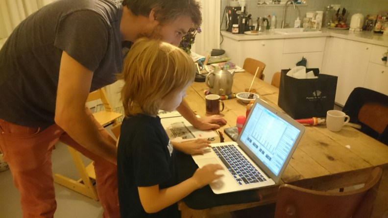 It’s been a great weekend with our Amsterdam friends. We visited two households and at both Simon was given workshops by advanced users of synth software and hardware. He was allowed to get creative on several synthesizers, one of them connected to Logic, and generally had a blast!