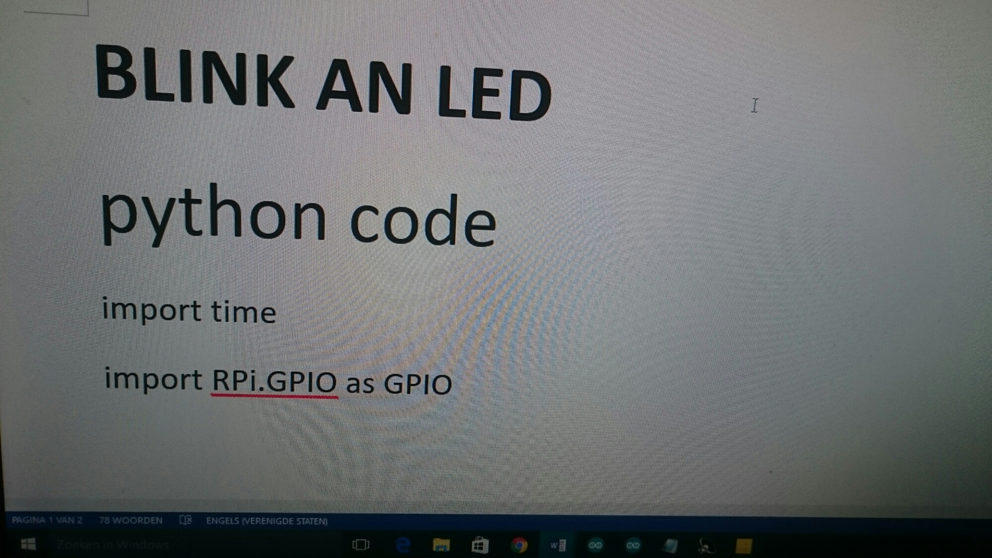 By Geeks out of the Box Posted on October 6, 2016October 6, 2016 Python Simon is exercising in Python. He tried to replicate the Blink LED project from an online Raspberry Pi tutorial here: Share this:TweetLike Loading... Related