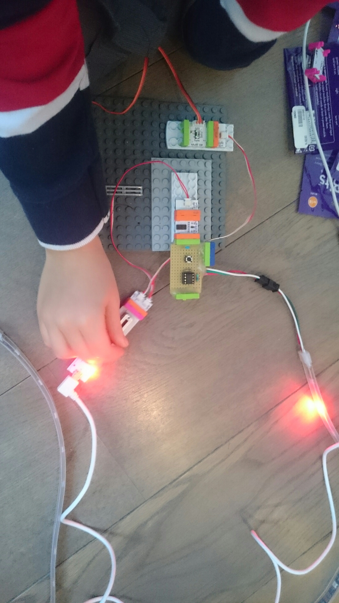 This weekend, our dear guests from Amsterdam gave Simon his first Lego set. He didn’t use to get excited about Lego but everything has changed since so many electronics building kits are Lego-compatible.