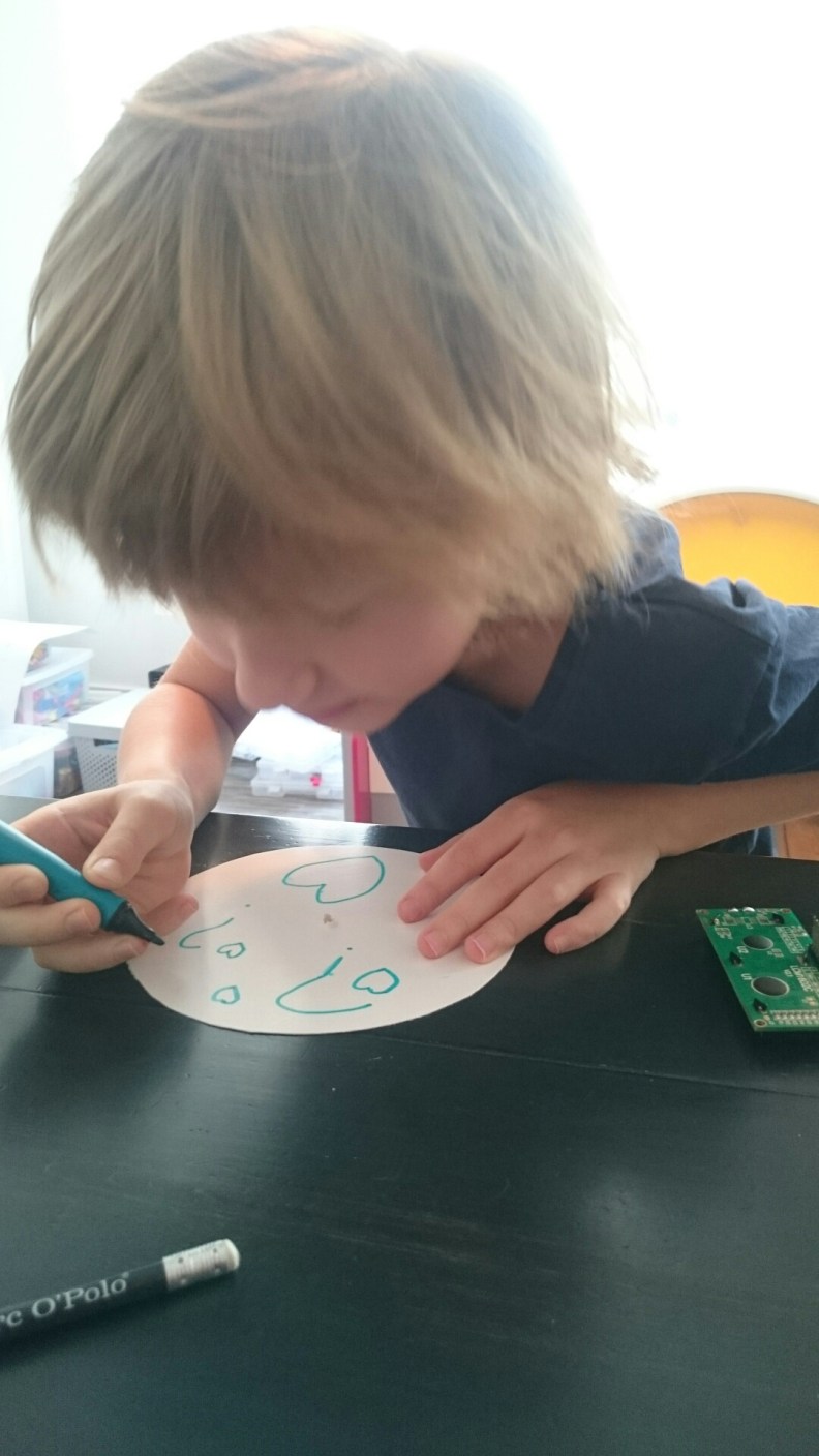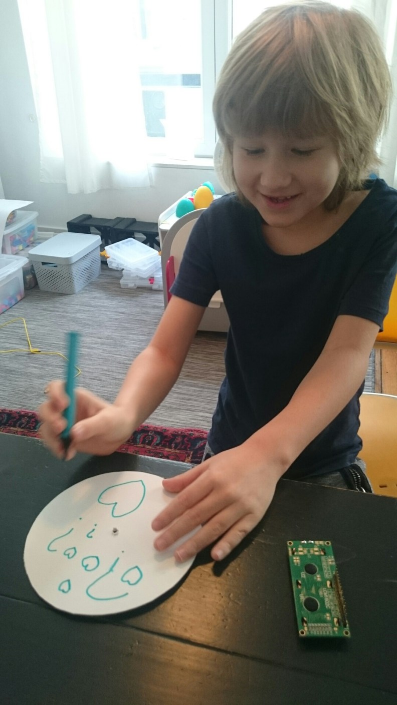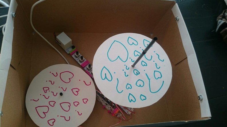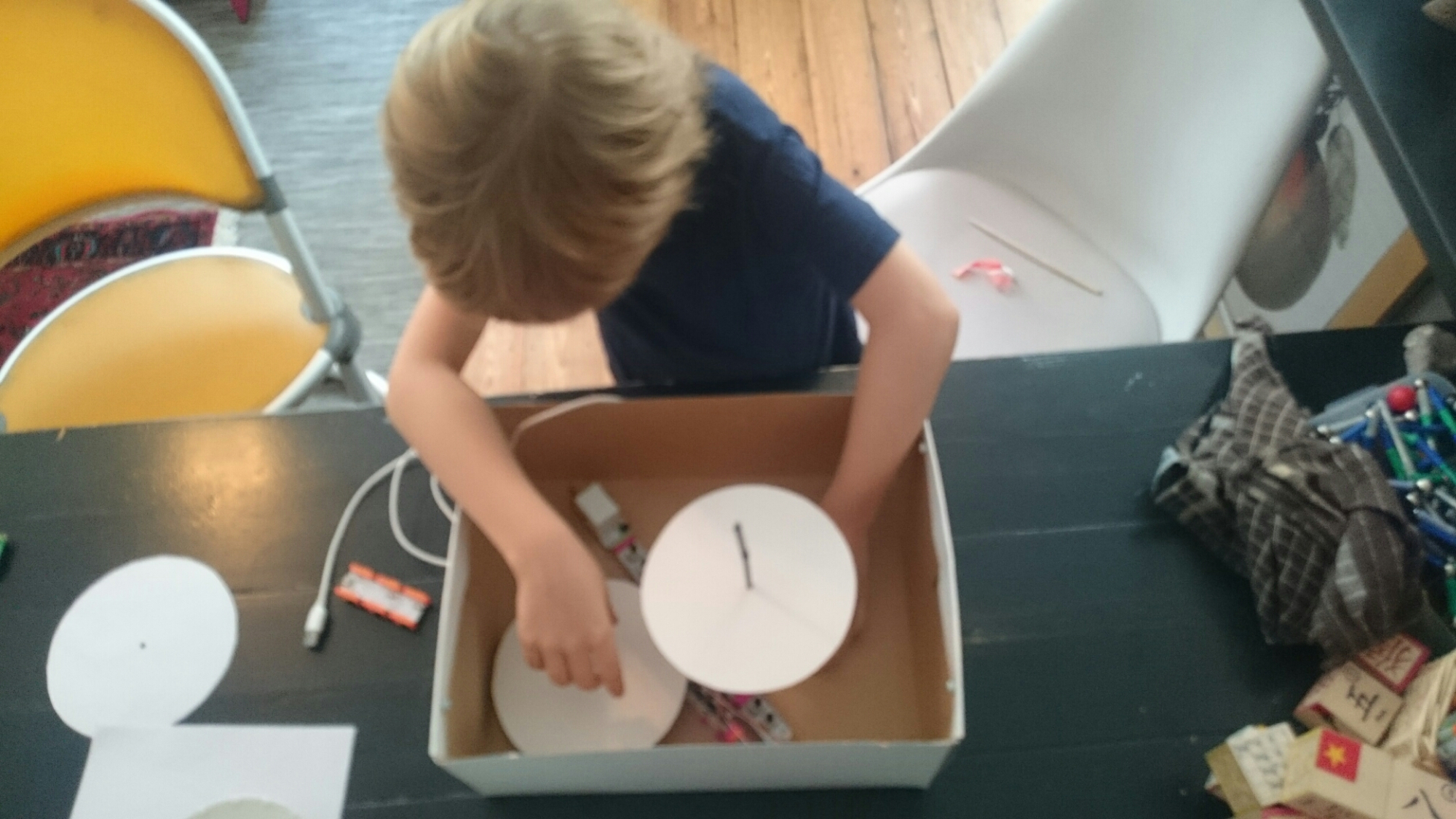 Today Simon tried to make a turn table. But it didn’t turn out exactly the way he wanted it, because various modules from his LittleBits Synth Kit are acting up. Looks like they’ve got a short life span.