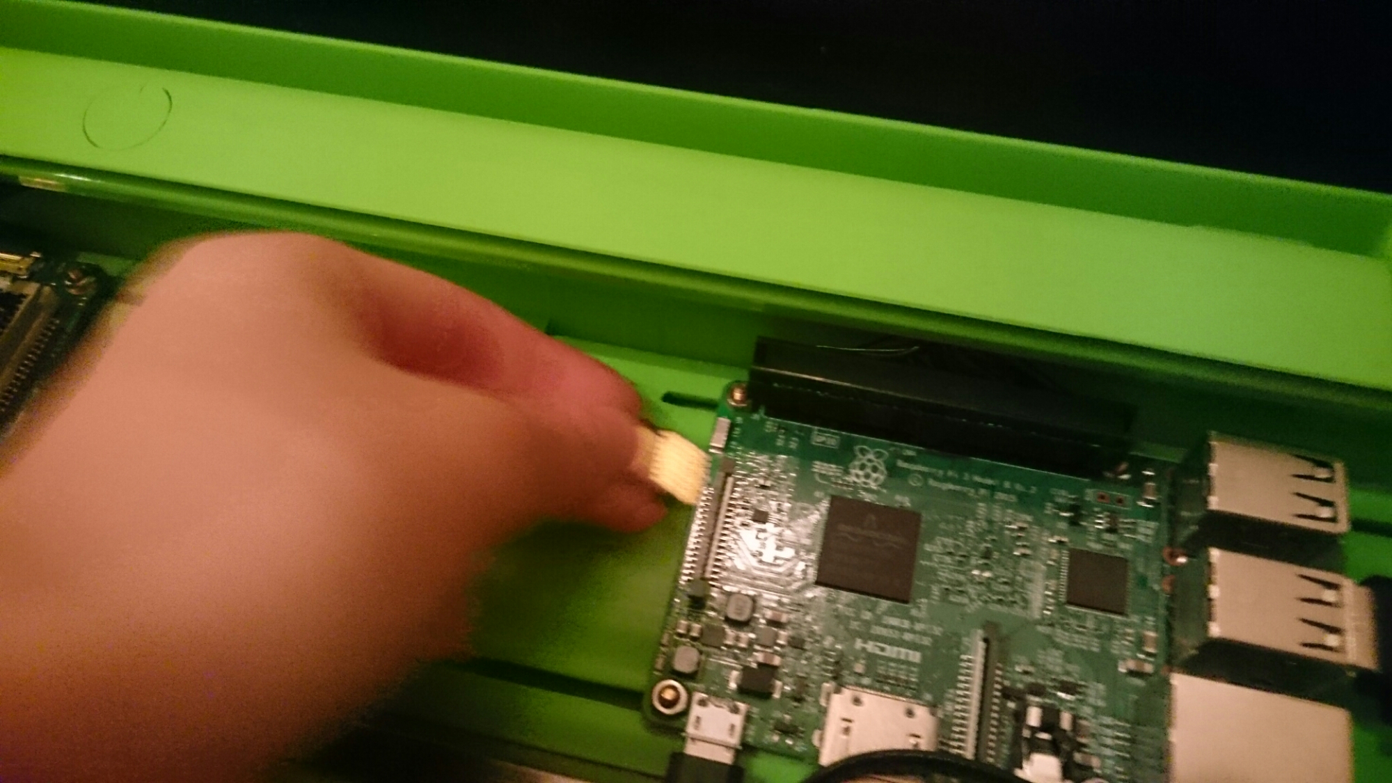 After reimaging the SD-card Simon reinstalled the tiny thing back into the RaspberryPi inside the PiTop without removing the RaspberryPi – he has thin fingers! It was a very exciting moment, we didn’t know if it would work. But it did!!