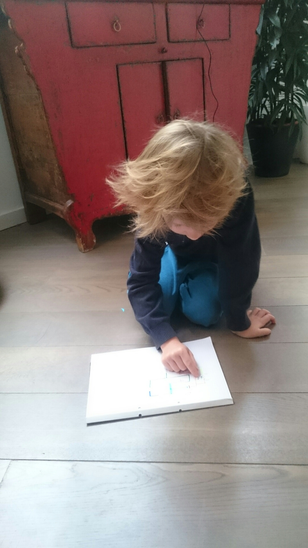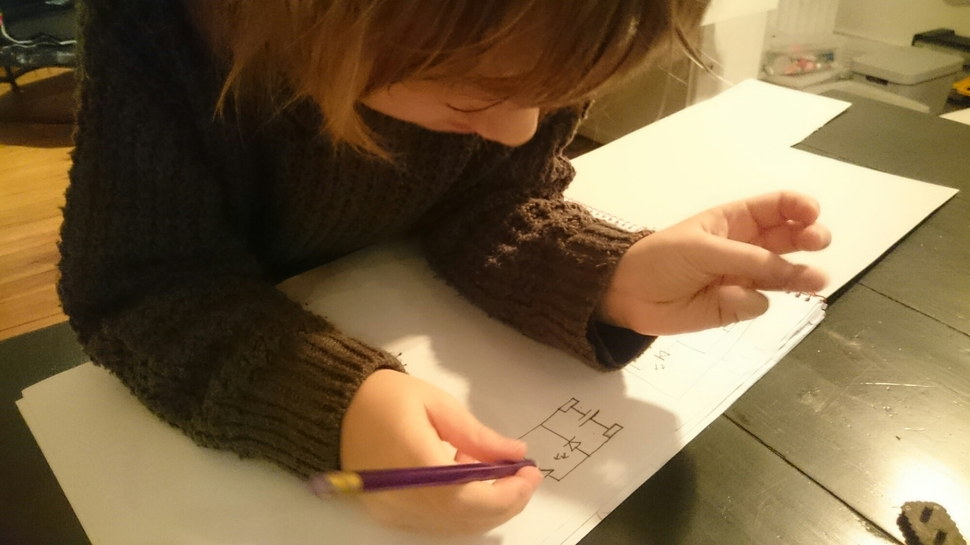 The photographs above are showing Simon colouring the schematics his teacher drew. He had to colour them in certain ways to understand series and parallel circuits. These are the tasks he solved on Monday together with his teacher: