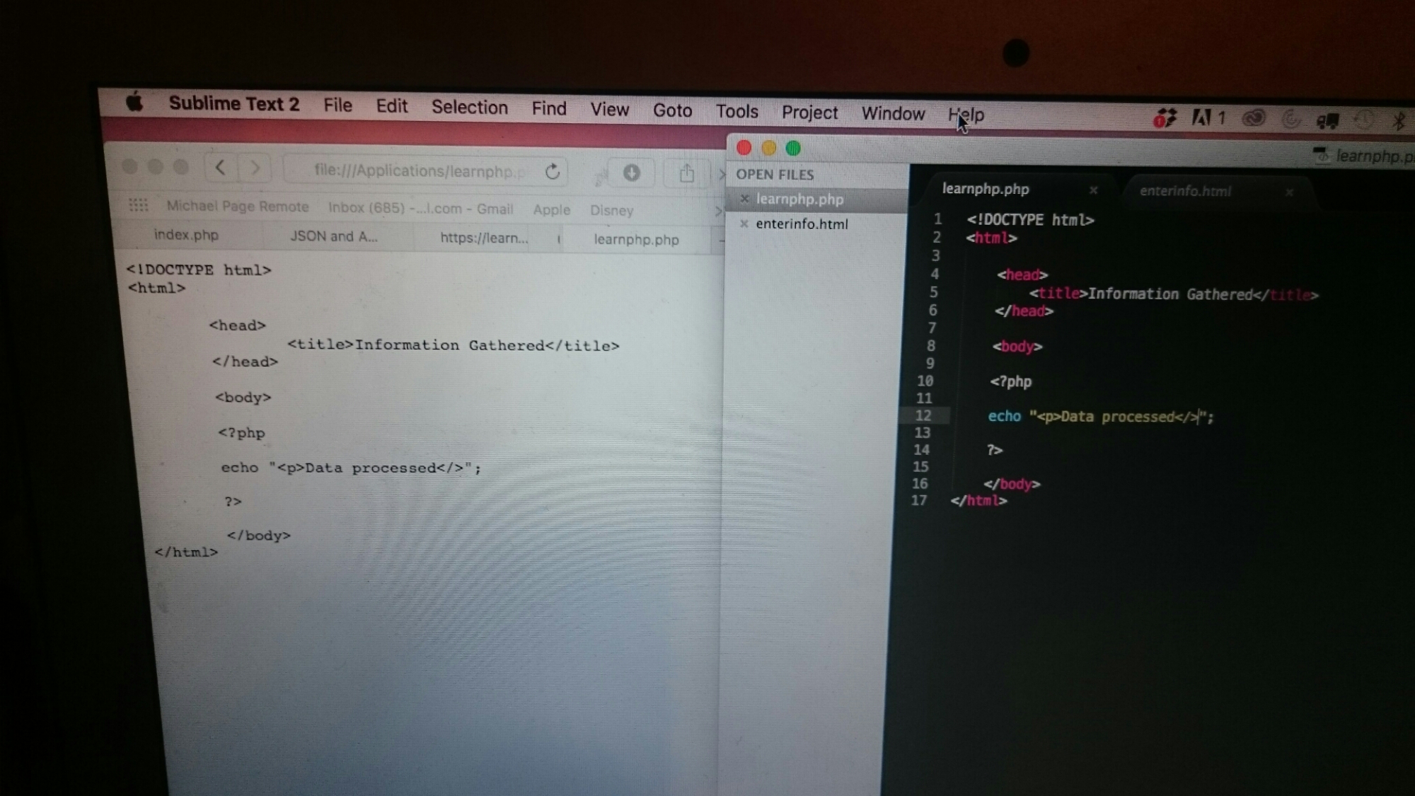 Tonight Simon was crying very hard and I had to rock him on my lap to ease down the pain: he couldn’t find any tutorial or any other kind of explanation on the internet about how to make the web browser interpret his PHP file as a PHP file instead of literally displaying the file, like it does now (he used Sublime Text as his text editor):