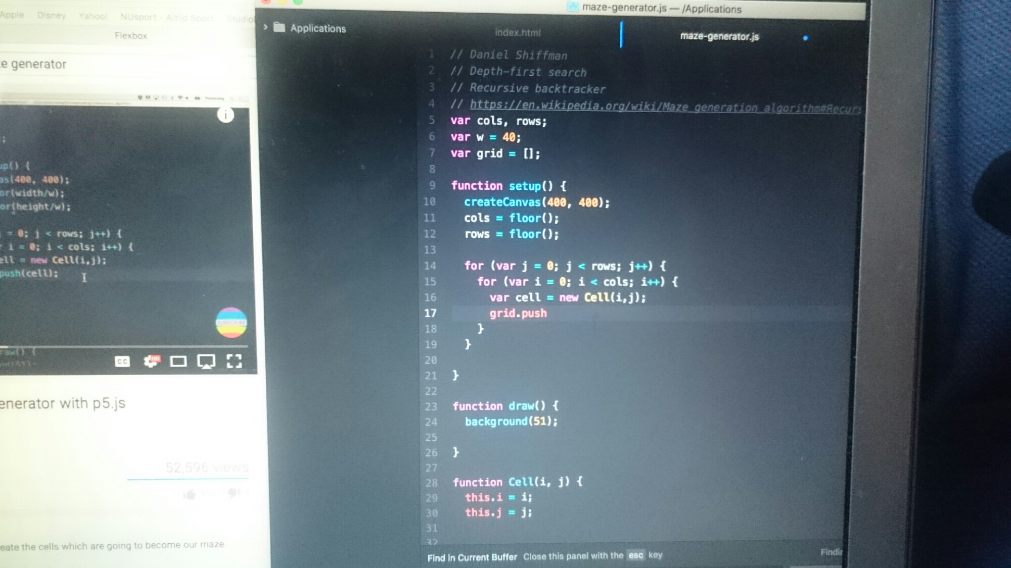 He also started working on Daniel Shiffman’s Maze Generator Coding Challenge: