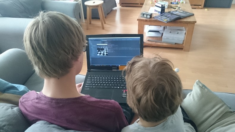 After I asked him that evening, what he loved most from the past weekend (that also involved sleeping over at grandparents’ house in Friesland), he said: trying to write code for 2048! I was surprised to hear that as I saw him do several projects in the course of the weekend but no “2048”. What is 2048? It turned out that, after he got tired of playing and snuggled with his laptop in the living room at our friends’ home, Simon tried to write his own code for a game he had played almost two years ago, involving the powers of 2. “It just got into my head!” he explained in the car on the way back. The video below is how far Simon got coding the game: