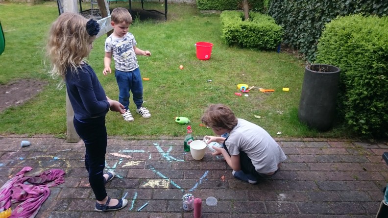 We had a great Sunday visiting friends in The Netherlands whose kids resemble Simon in many ways. Simon made his signature bubble solution: