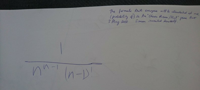 Probability that everyone will be eliminated simultaneously in Simon’s “Hat Game” (a card game he invented):