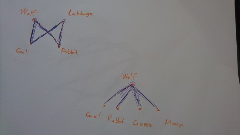 Math graphs for solving the simple and the more advanced River Crossings puzzles using minimum vertex covers and Alcuin Numbers (learned via Numberphile):