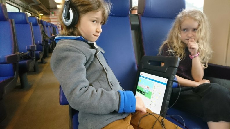 On the way to London: Simon watching the Coding Train on the train…