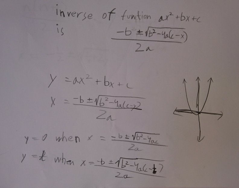 By Geeks out of the Box Posted on July 1, 2018July 18, 2018 Simon’s formula for an inverse function of quadratic polynomial Simon worked out this formula using the quadratic formula. Share this:TweetLike Loading... Related