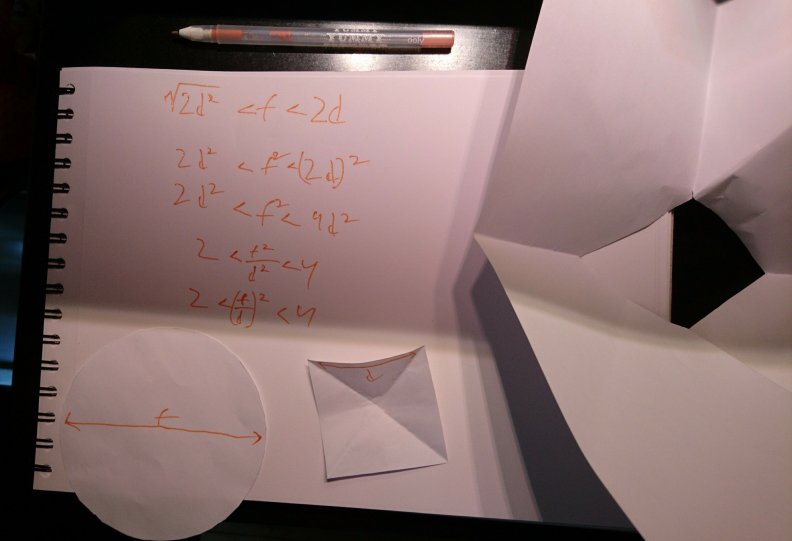 Simon made a remix of the Numberphile video called “Round Peg in a Square Hole” (by Tadashi Tokieda) and worked out the albraic formula behind the trick.