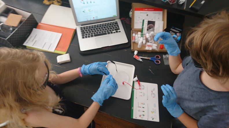 Today we opened our second MEL Chemistry box with two experiments using tin (Sn). We made a tin dendrite and grew a tin hedgehog. Both experiments involved preparing a tin chloride SnCl2 solution (by mixing tin chloride with a sodium bisulfate). In the first experiment, we had electric current flow through the solution (by connecting it to batteries via crocodile clips), so it acted like an electrolyte. A tin reduction reaction took place: Sn2+(solution) + 2e–→ Sn(solid)