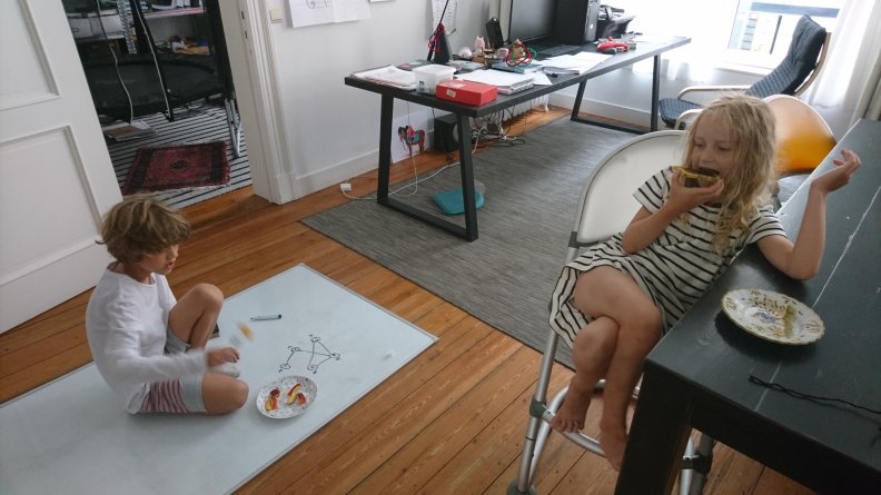 Simon and Neva work on the math problem called ‘The Dollar Game’ late in the evening before the day school officially starts in Belgium and continue as soon as they wake up the following morning: