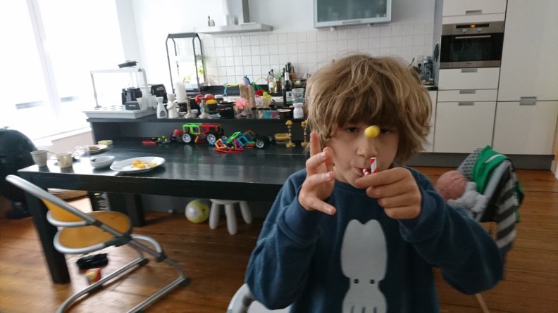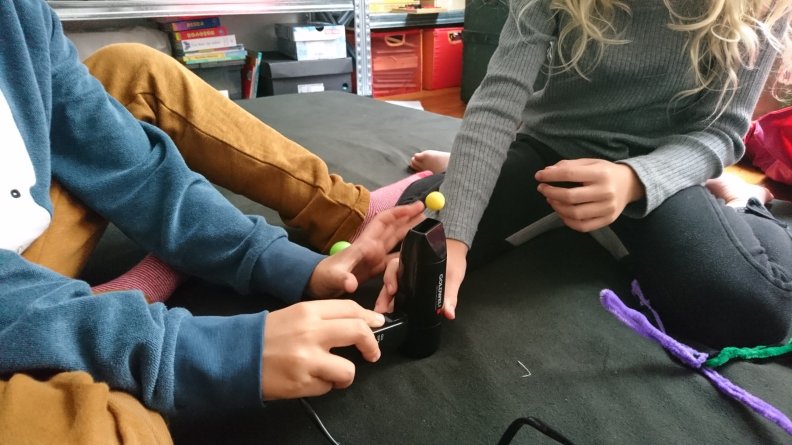 This is Simon’s favourite self-made toy at the moment: a straw and a ball made of foam clay. He is continuously experimenting with trying to levitate the ball with rising air, also after he tilts the straw and the air is blown sideways, a phenomenon dominated by the Coanda effect. Above is another variation of this experiment with a blow drier. Simon is also interested in acoustic levitation, but we had to admit to ourselves that building an acoustic levitation set at home is to advanced for us, at least for the time being.