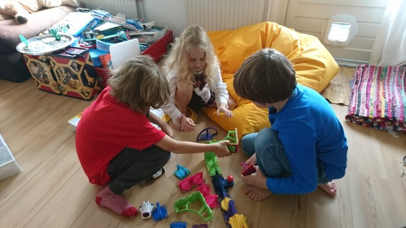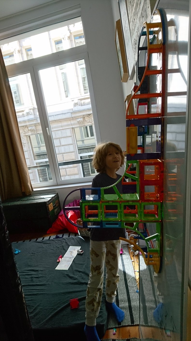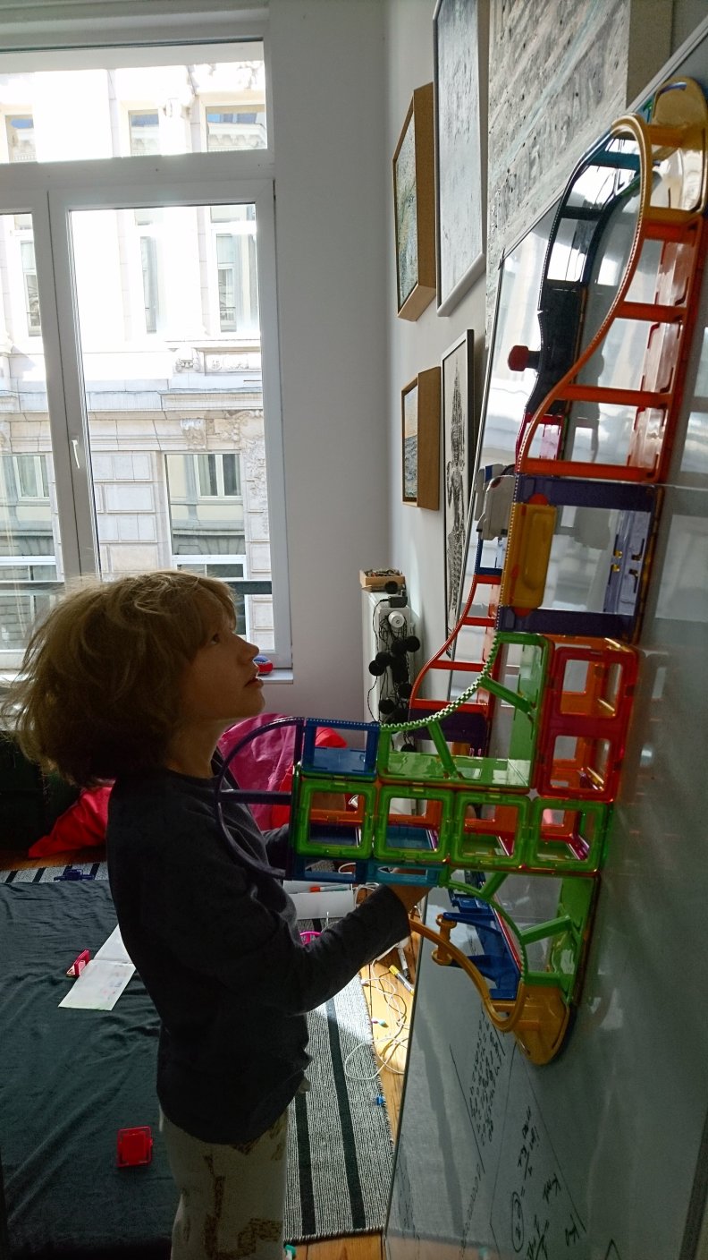 Simon took the Sky Track along when visiting an older friend in Amsterdam and it had great success. We generally see Simon open up more to playing together and just having genuine childlike fun instead of having continuous scruples about waisting time and the need to be working on his science and programming projects without interruption.