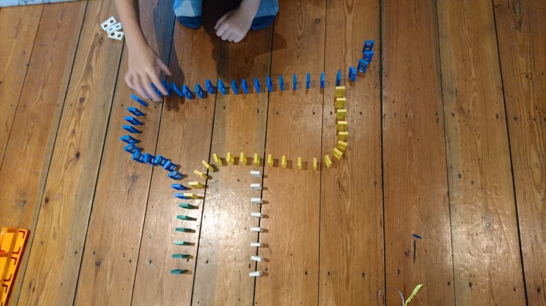 Simon building the AND logic gate with dominos: