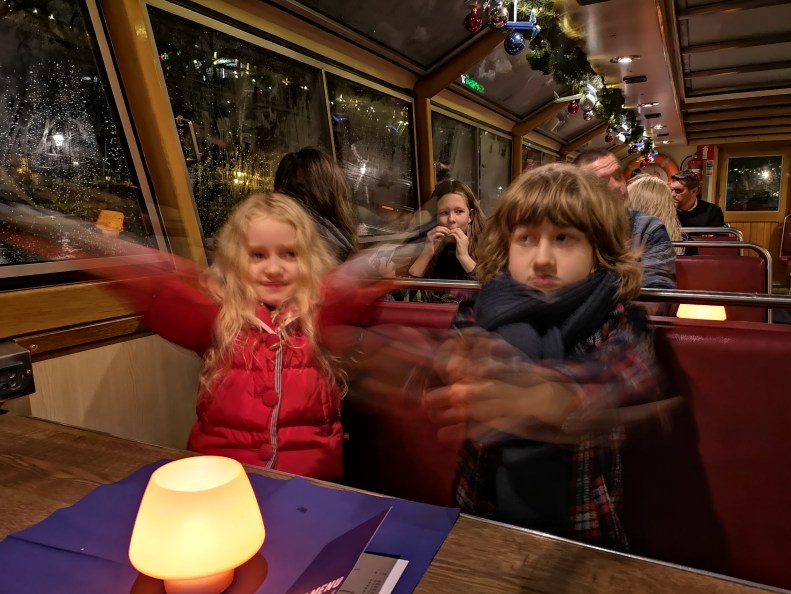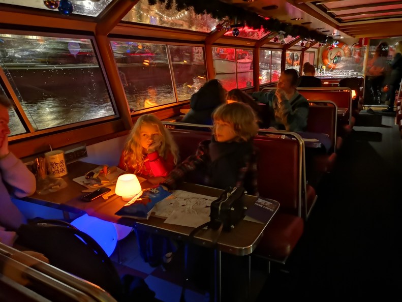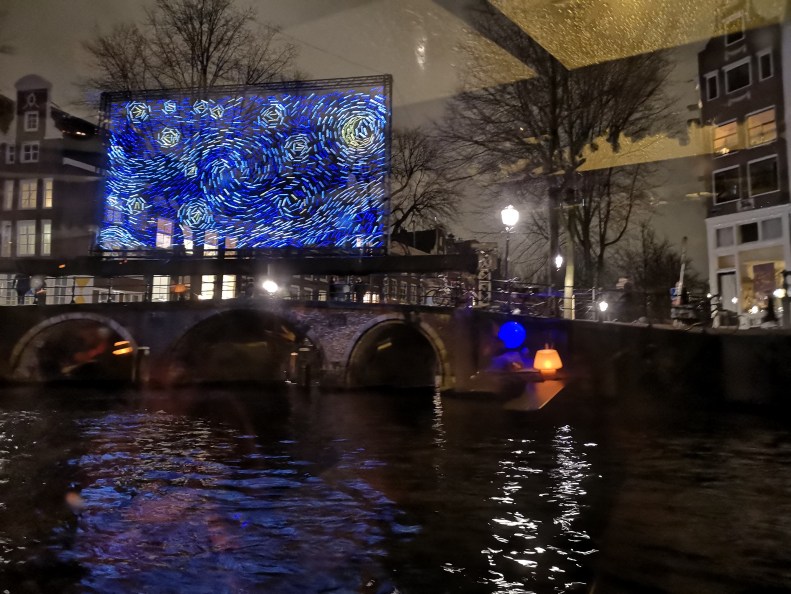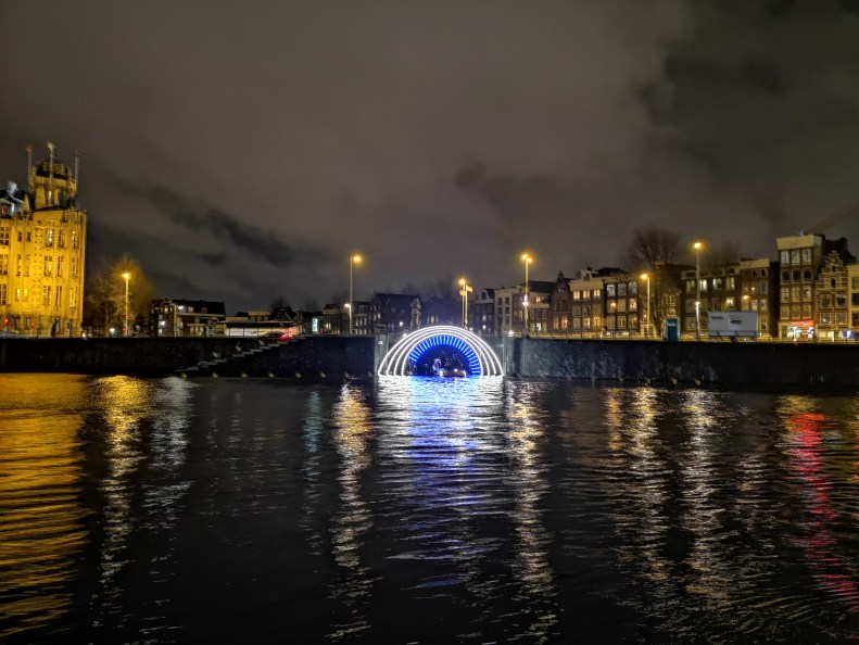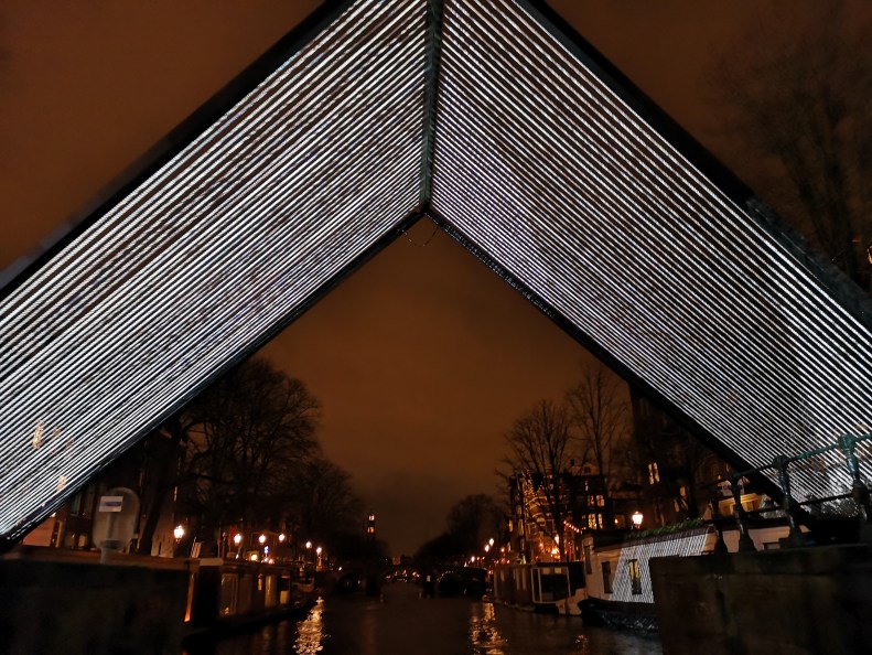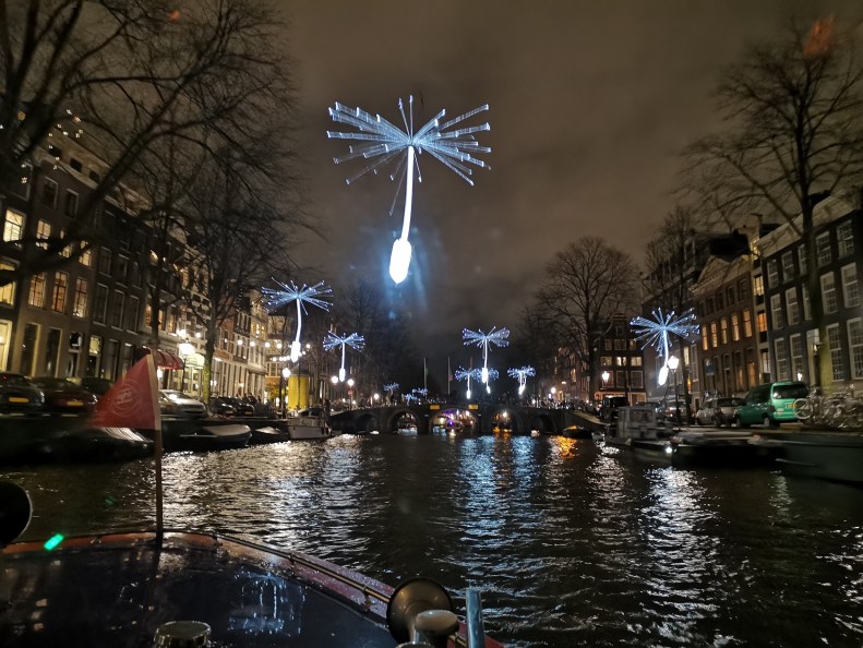 Simon’s first long boat trip, to see all the artwork presented at the Amsterdam Light Festival this year. Pleasantly surprised at how many pieces were inspired with his favorite themes (glass fiber, RGB perception, string theory, neural networks).