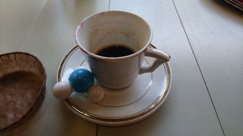 Coffee with dichloromethane and ammonia. Just kidding! It’s Simon, who turns everything – even a trip to the gluten free bakery on a terribly rainy day – into a science lesson.