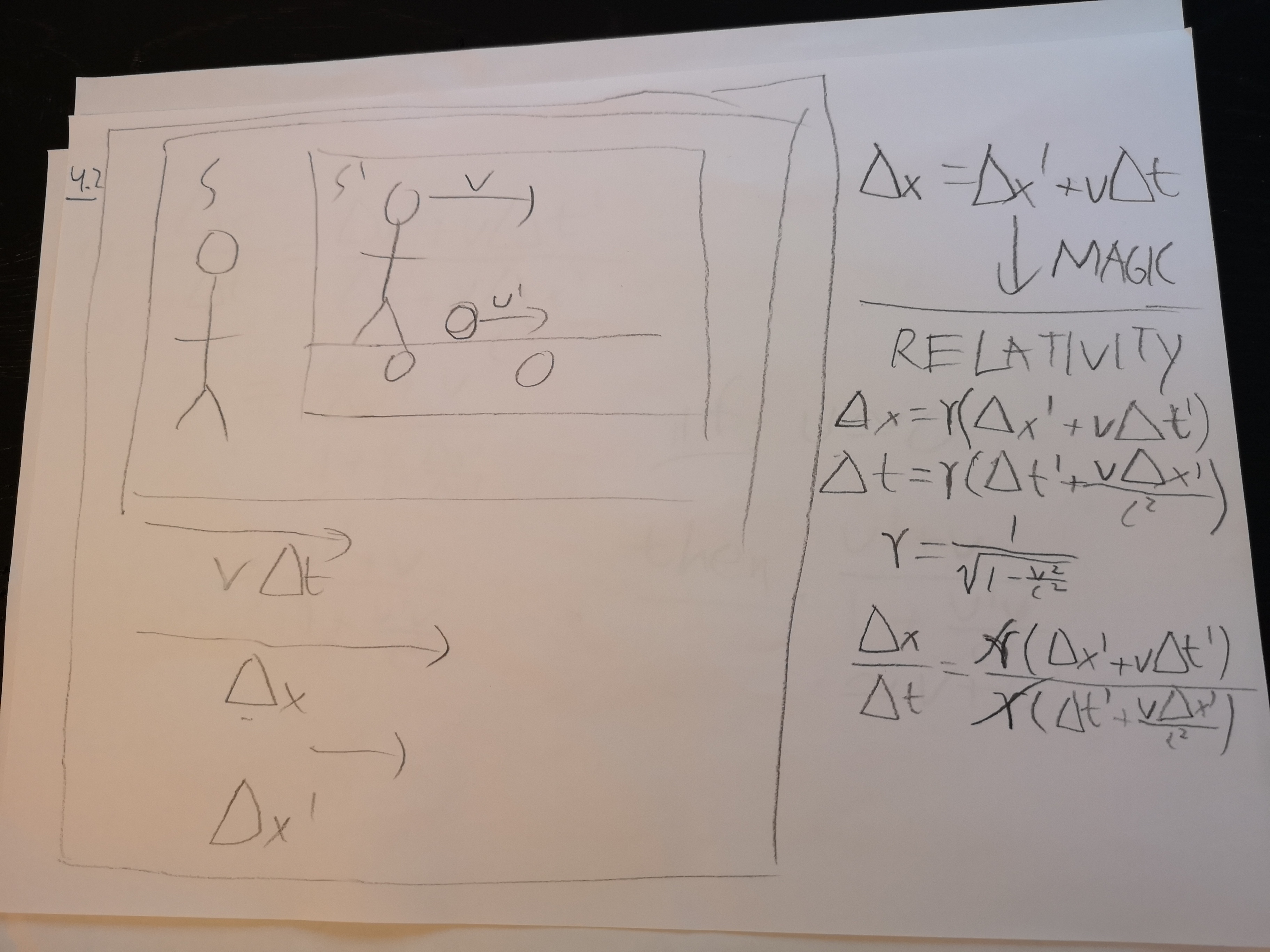Simon walks you through several special relativity paradoxes and a brief proof of why nothing can move faster than light. He shows the working out of the distance formula.