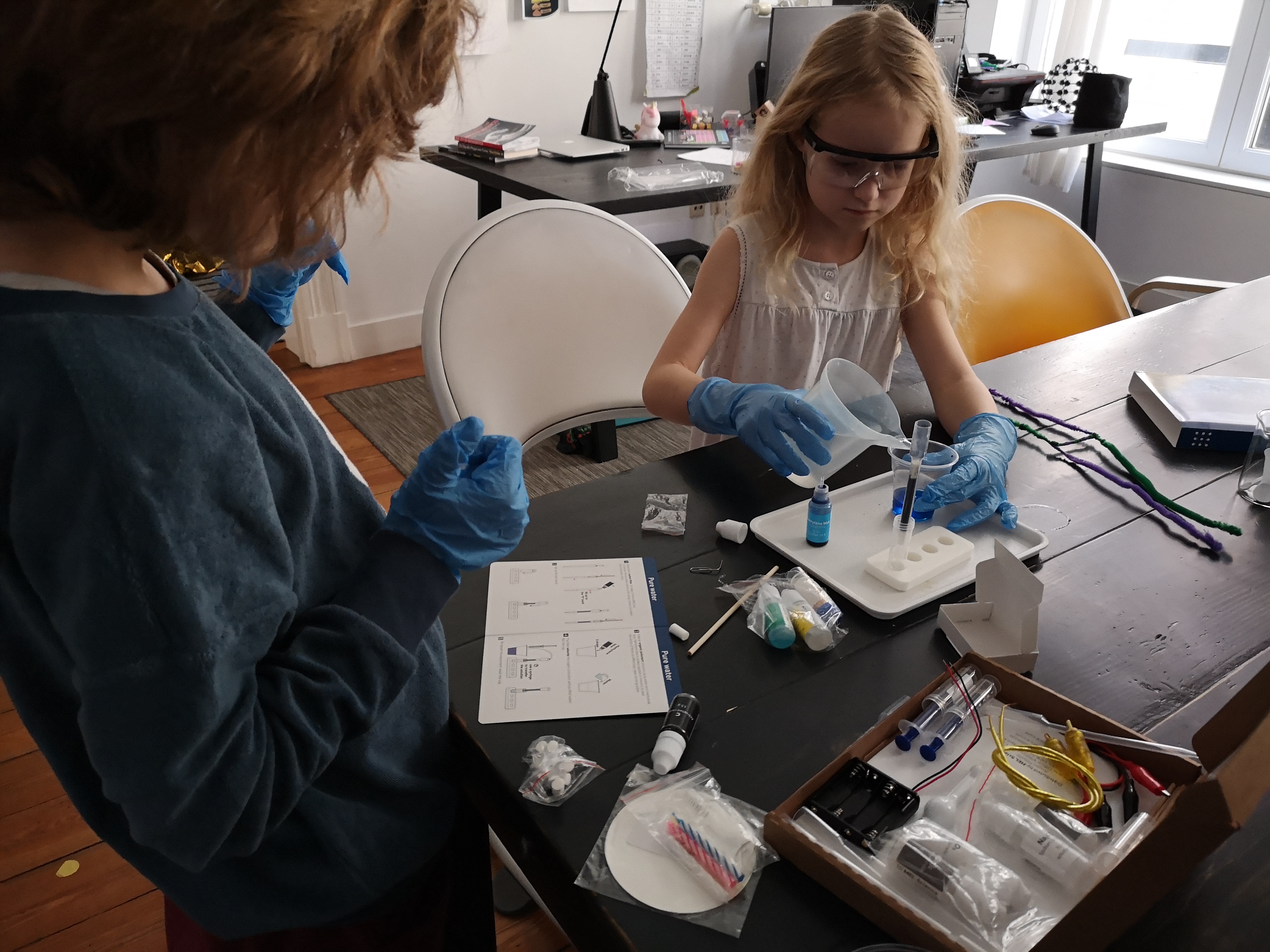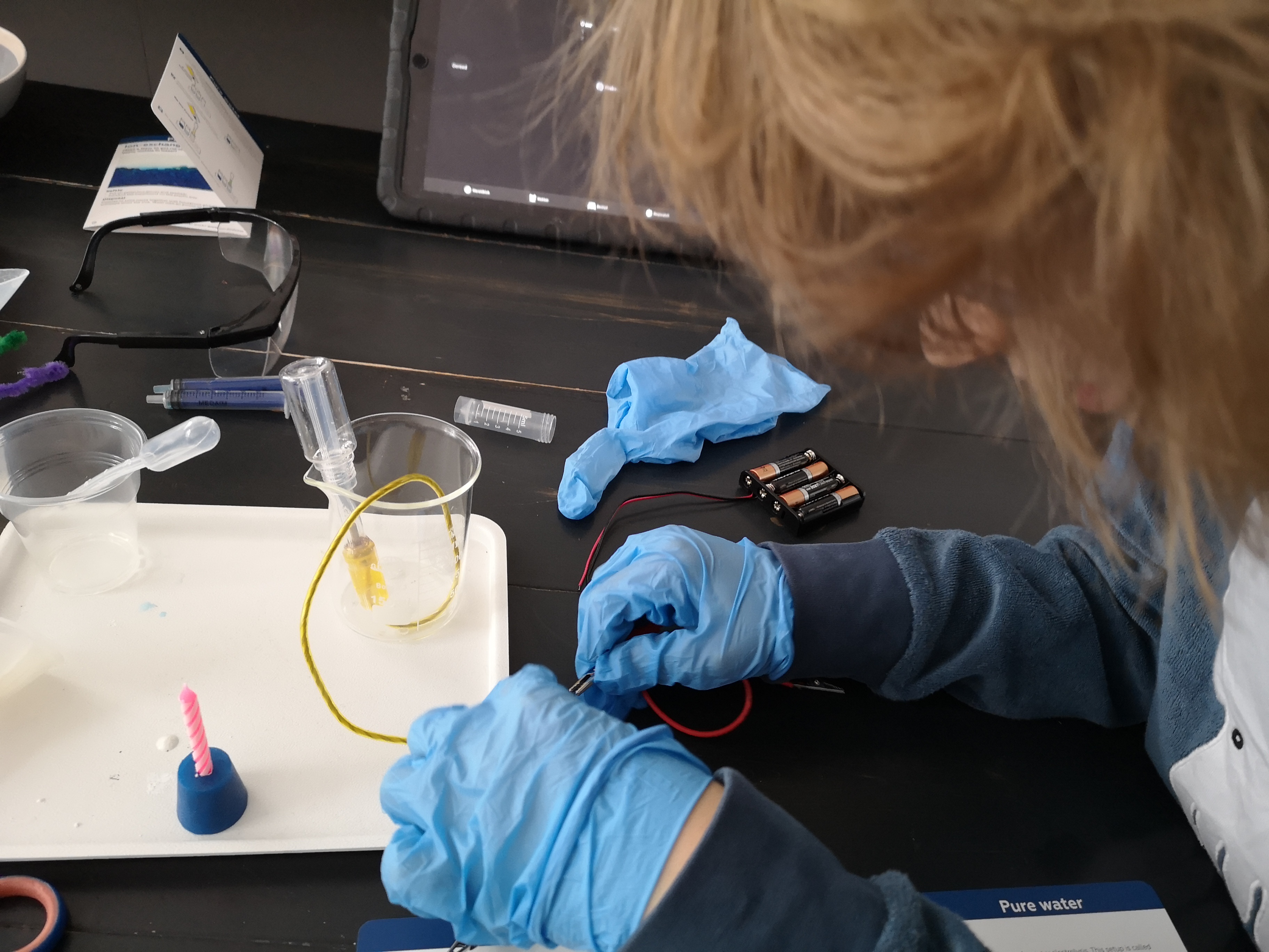Simon also performed two more experiments to purify water (from heavy metals using resin and organic pollutants using activated coal).