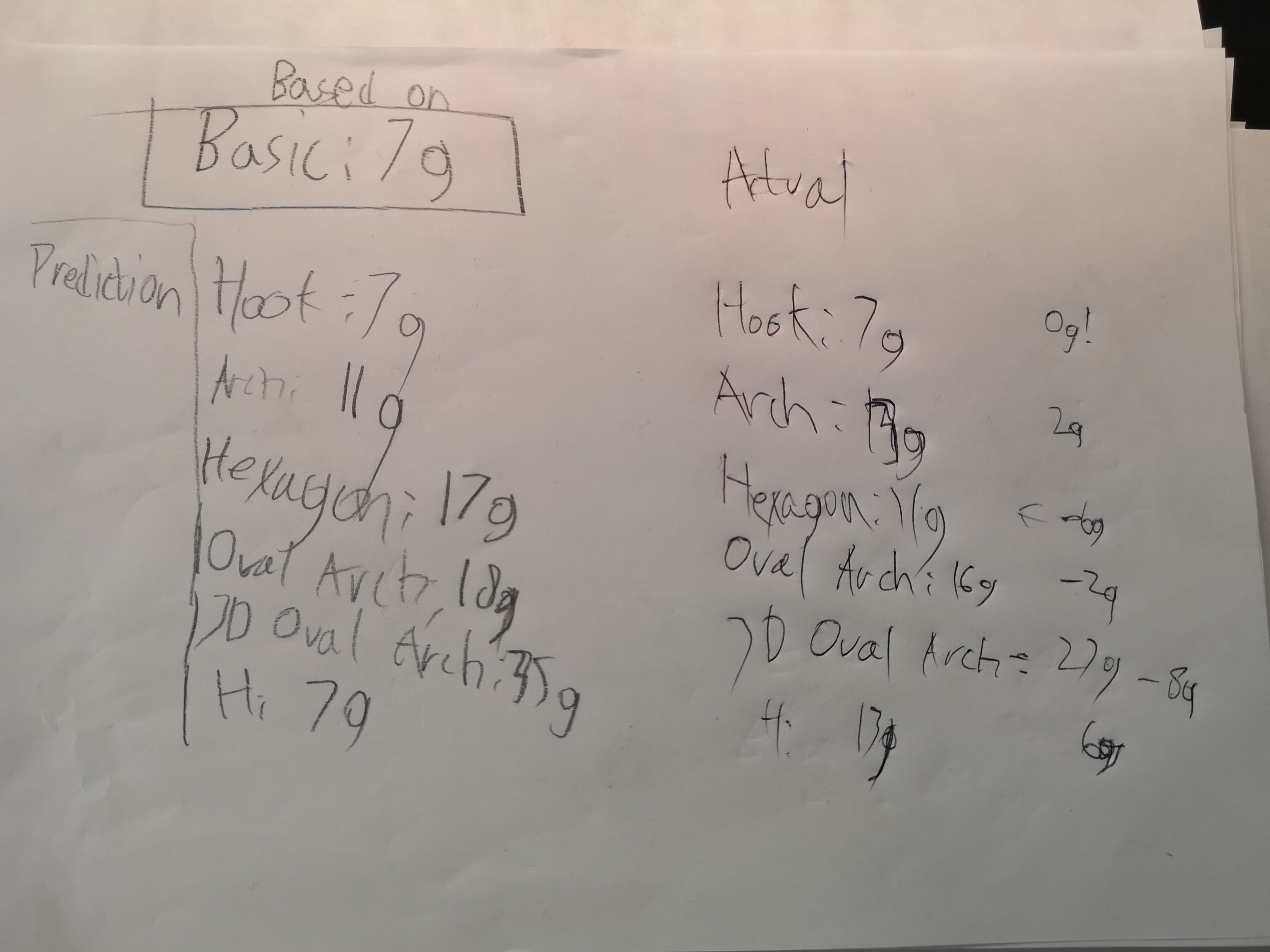 Simon tried to predict the weight of some of his constructor pieces by calculating their approximate area.