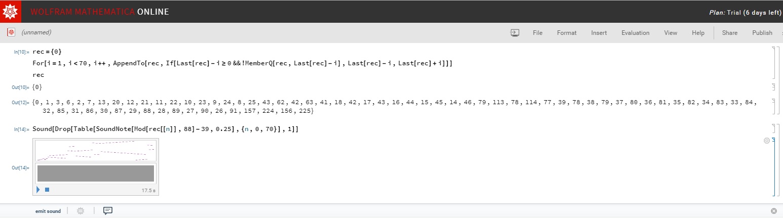 Simon has created the Recaman Sequence audio in Wolfram! First with 70 notes, then with 300 notes.