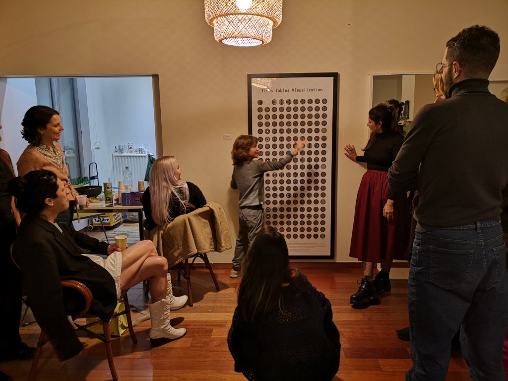 Simon explaining his creative coding poster to artists from the Antwerp Art Academy at a small exhibition he was part of last Wednesday.