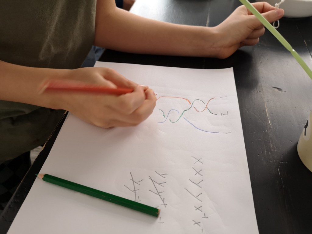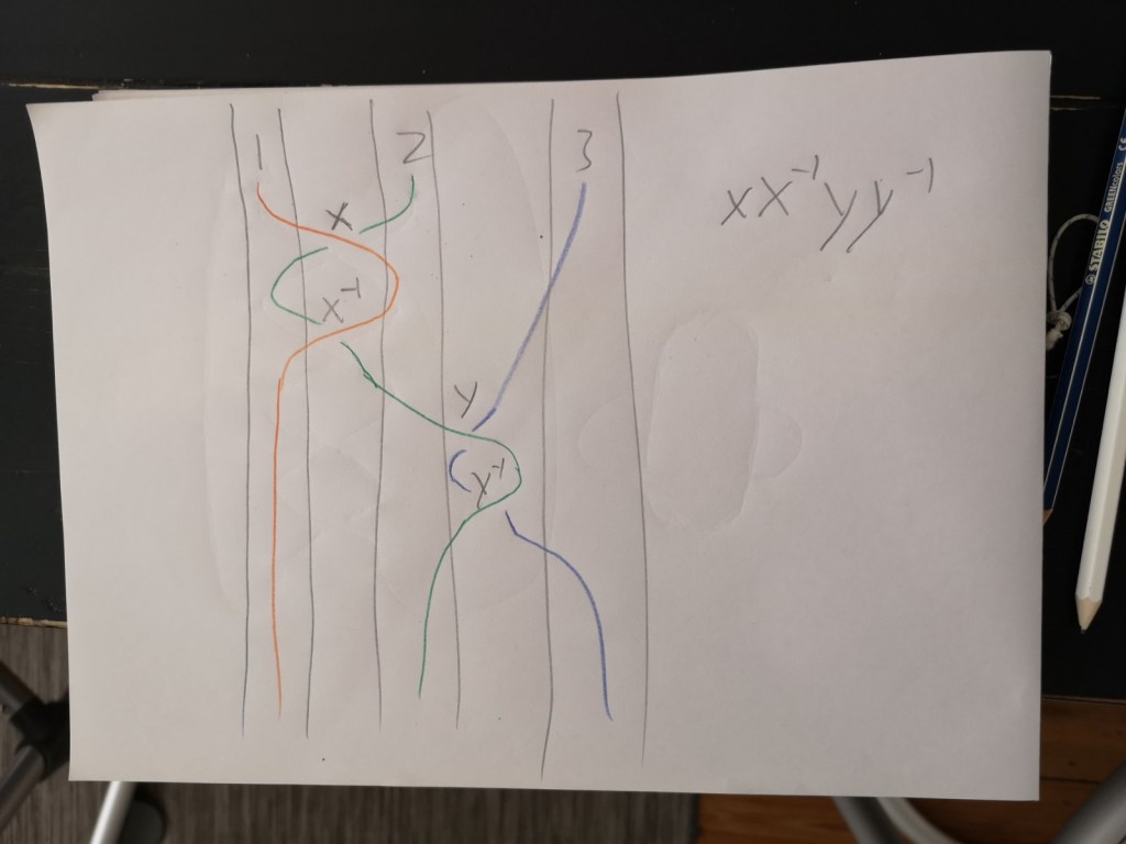 Simon has shown us a curious puzzle: if you hang a poster on a string using two pins, what is the way to arrange the string so that the poster definitely falls once you remove any pin? The math behind the trick involves Knot Theory. Simon has learned the trick from this video by Jade, the creator of the science and phlosophy Up an Atom channel that Simon loves.