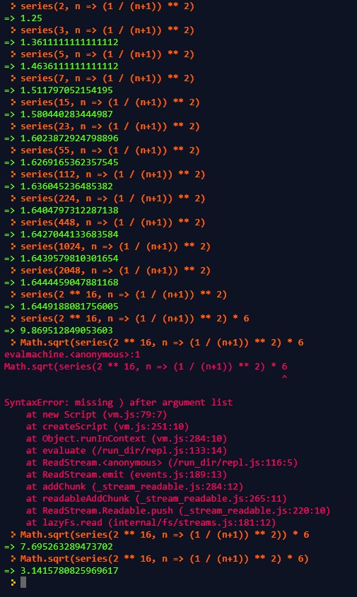 Simon has made a small calculator/approximator in Repl.it that shows what number an infinite series converges to: https://repl.it/@simontiger/Series
