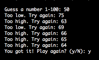 Simon writes: Made a little game where the computer thinks of a number 1-100, and you try to guess it within 7 takes! Hint: the algorithm is called “Binary Search”. https://repl.it/@simontiger/NumberGuessingGame