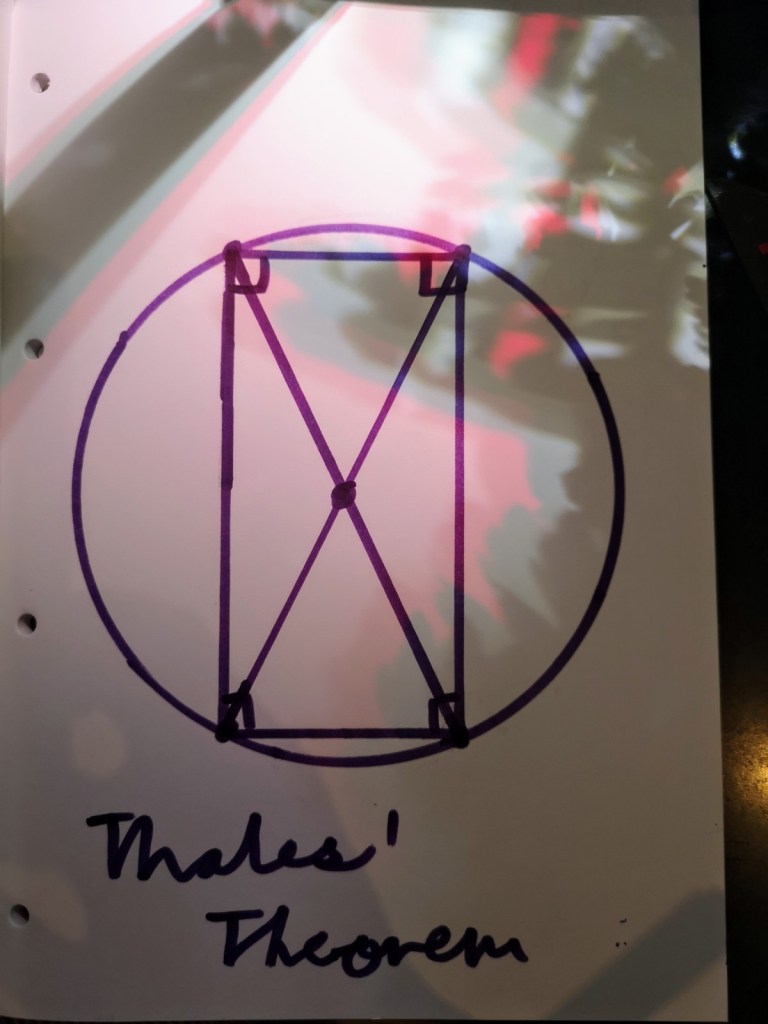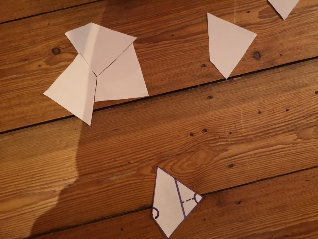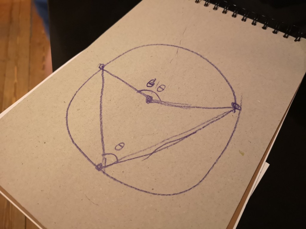 “It reveals itself once you complete the rectangle to find the centre. Because, of course, the diagonal passes through the centre once you inscribe a rectangle inside the circle, because of the symmetry”.Tiling the quadrilaterals Simon has crafted applying the inscribed angle theorem.Tiling the “shapes generated by the inscribed angle theorem”“The theorem says that if you have a circle and just three random points on it, then you draw a path between te first point to the second, to the centre, to the third point and back to the first point”.