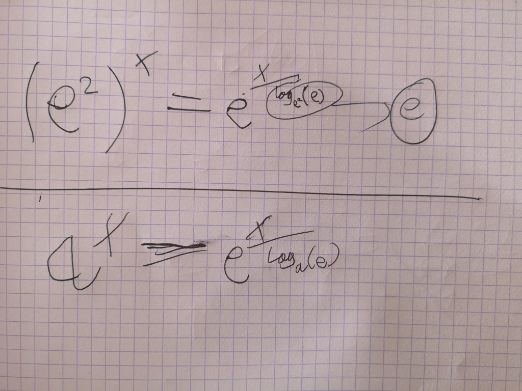 Simon was showing Dad a graph of how technology is developing exponentially, y = a^x. Dad asked for a specific value of a, and Simon said: “All exponentials are stretched out or squished versions of the same thing.” He then quickly came up with the proof (“a few lines of relatively simple algebra”). “If all exponentials are pretty much the same, that means that all exponentials have proportionately the same derivative.”