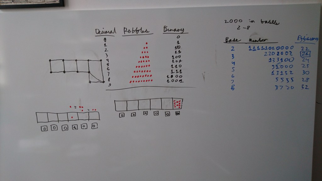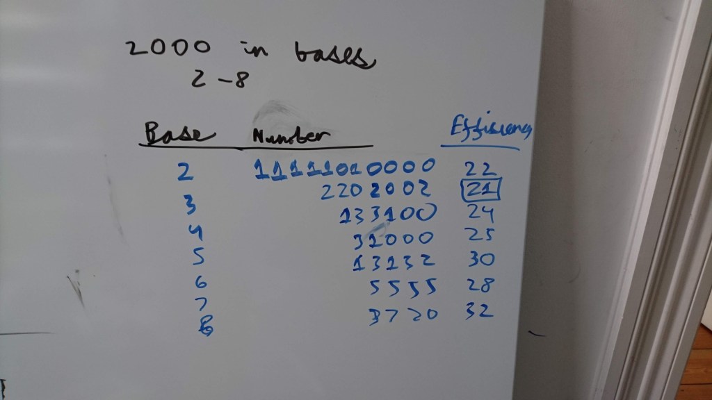 I’ve discovered that base 3 is the most efficient base (not base 2). Actually the most efficient base is e, and 3 is the closest to e (the proof requires Calculus).