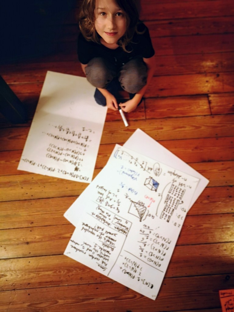 At MathsJam last night, Simon was really eager to show his proof to Rudi Penne, a professor from the University of Antwerp who was sitting next to Simon last time he gave it a go back in June. Rudi kept Simon’s notes and told me he really admired the way Simon’s reasoning spans borders between subjects (the way Simon can start with combinatorics and jump to geometry), something that many students nurtured within the structured subject system are incapable of doing, Rudi said. Who needs borders?