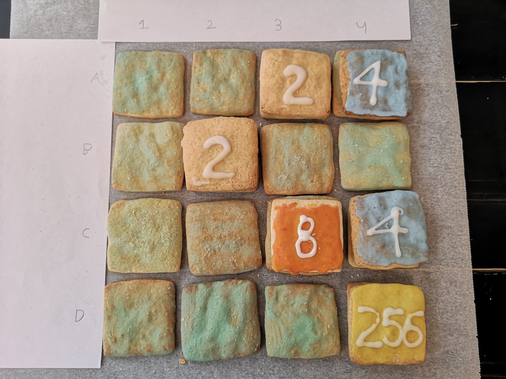 We devoted the beginning of January to a goofy stop-motion project: Simon and I baked 2048 cookies! No, we didn’t bake over two thousand cookies! We only baked and decorated a little over a hundred of them, Simon had calculated that that would be enough to play the 2048 game… with cookies. Simon came up with all the editing tricks to make this project work. In the video, he also explains his winning strategy and confesses he has made another attempt to program the game, without me knowing it. Apparently, that’s how he first came up with the idea to bake the cookies, by looking up pictures of 2048 while programming and stumbling upon this blog.
