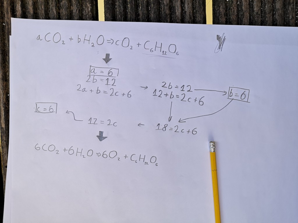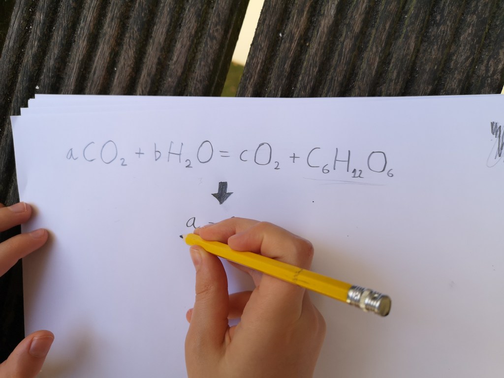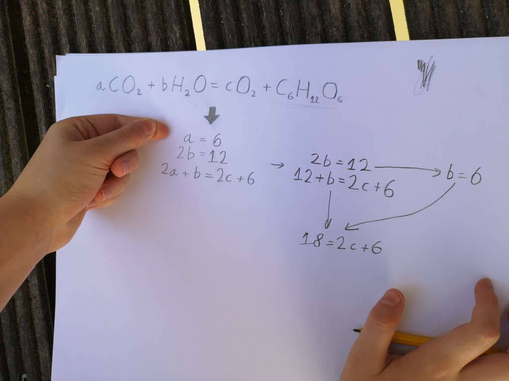 Sitting on our sunny balcony, Simon wrote down the chemical formula for photosynthesis and “converted” it onto a mathematical equation.