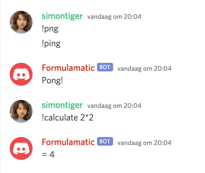 The second screenshot is of Formulamatic, a bot that can perform calculations if you type “!calculate”. It can calculate factorials, trig functions, roots, powers, logs and play pong: