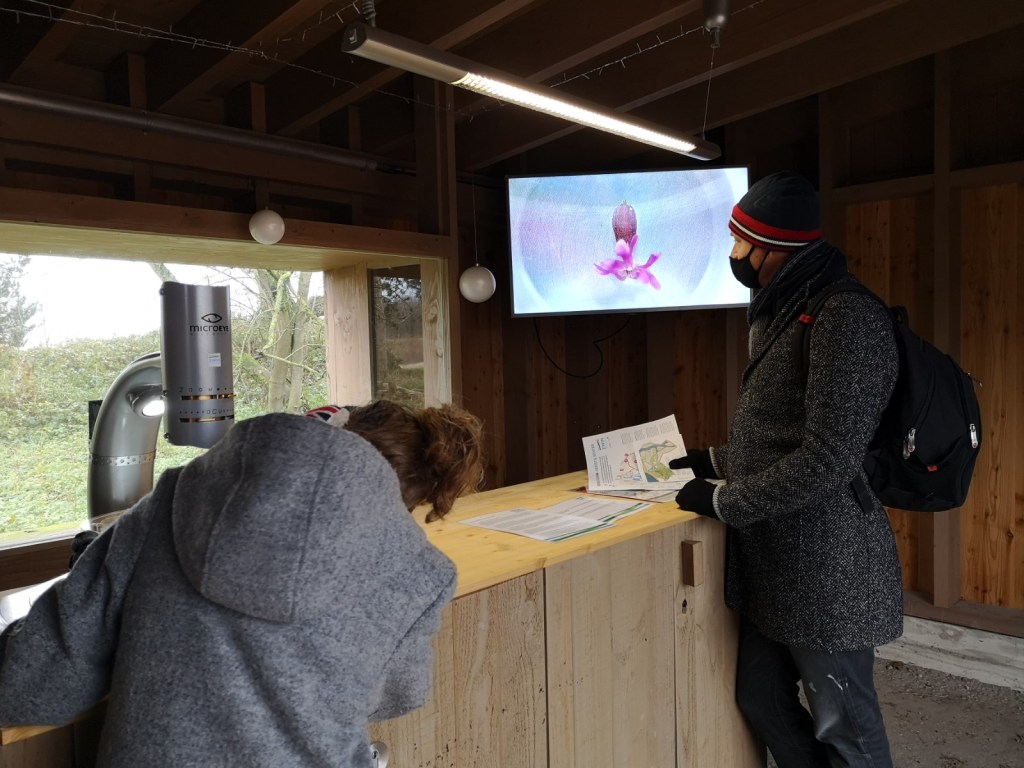 There’re also a few science stations along the way featuring bird sounds or, like on the pictures below, a microscope with treasures from the park in petri dishes: