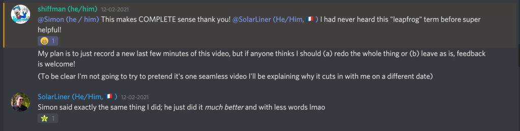 And here comes an update with two later posts from mid-Feb, featuring an excerpt of a Discord conversation where Simon was helping dan with pendulums: