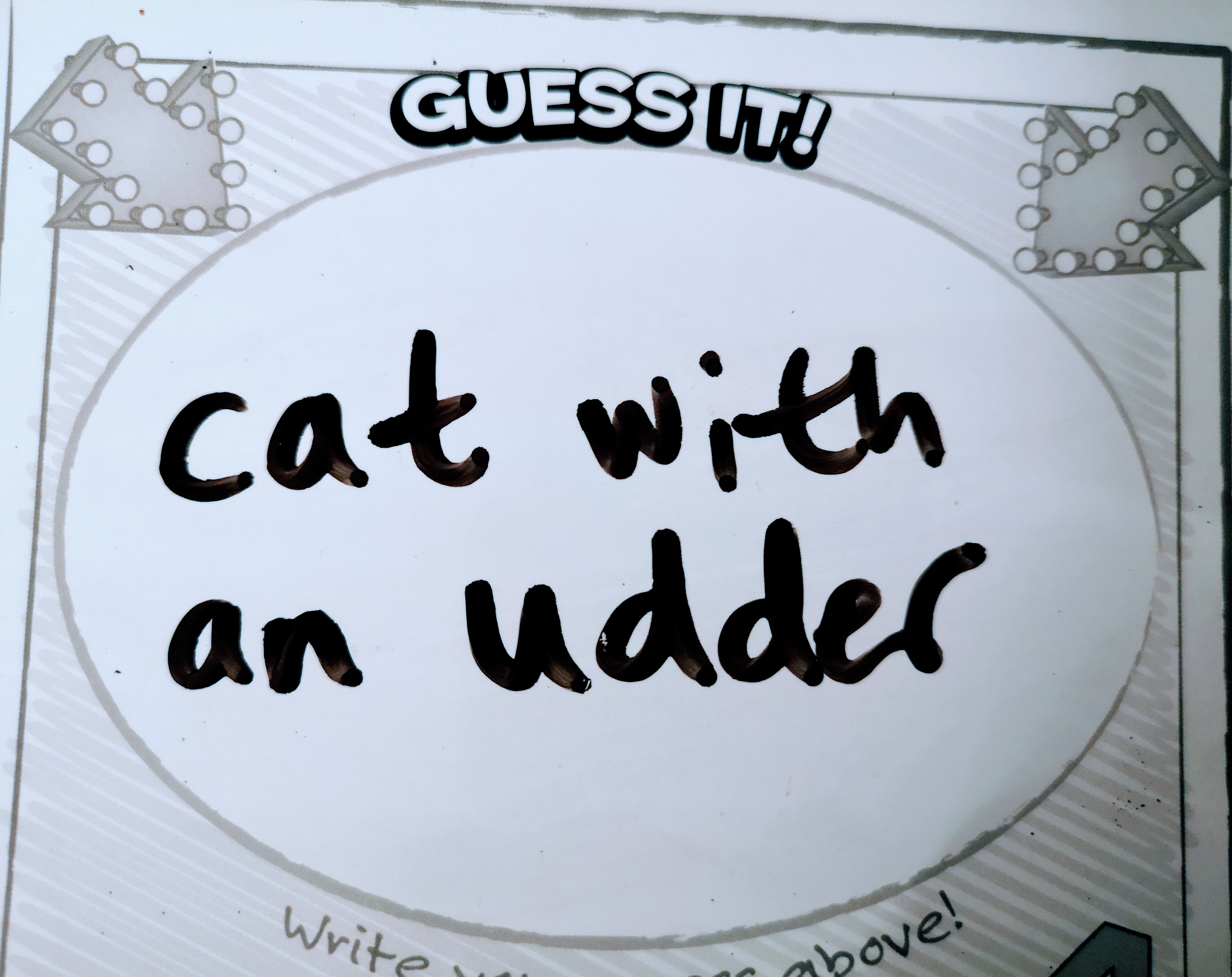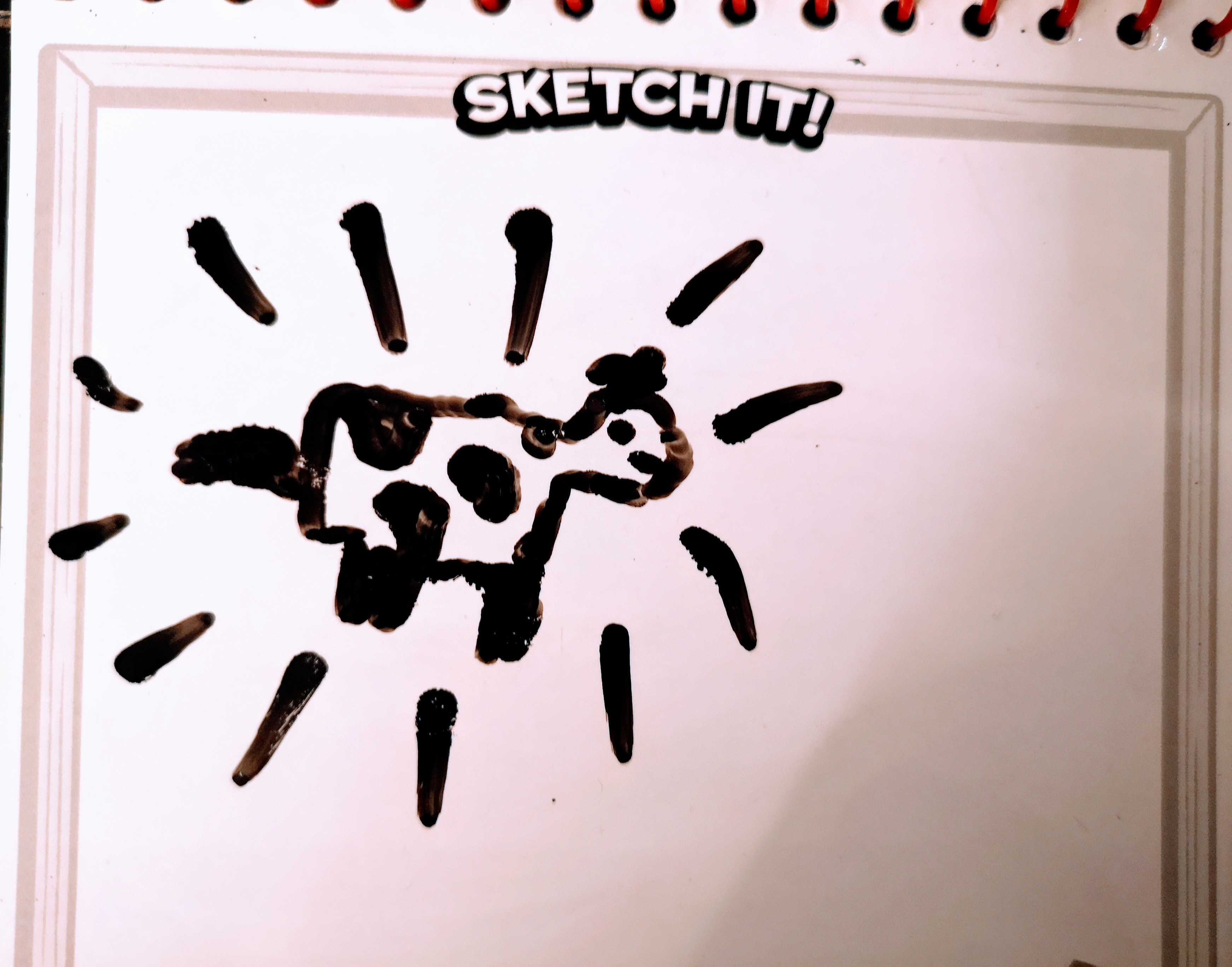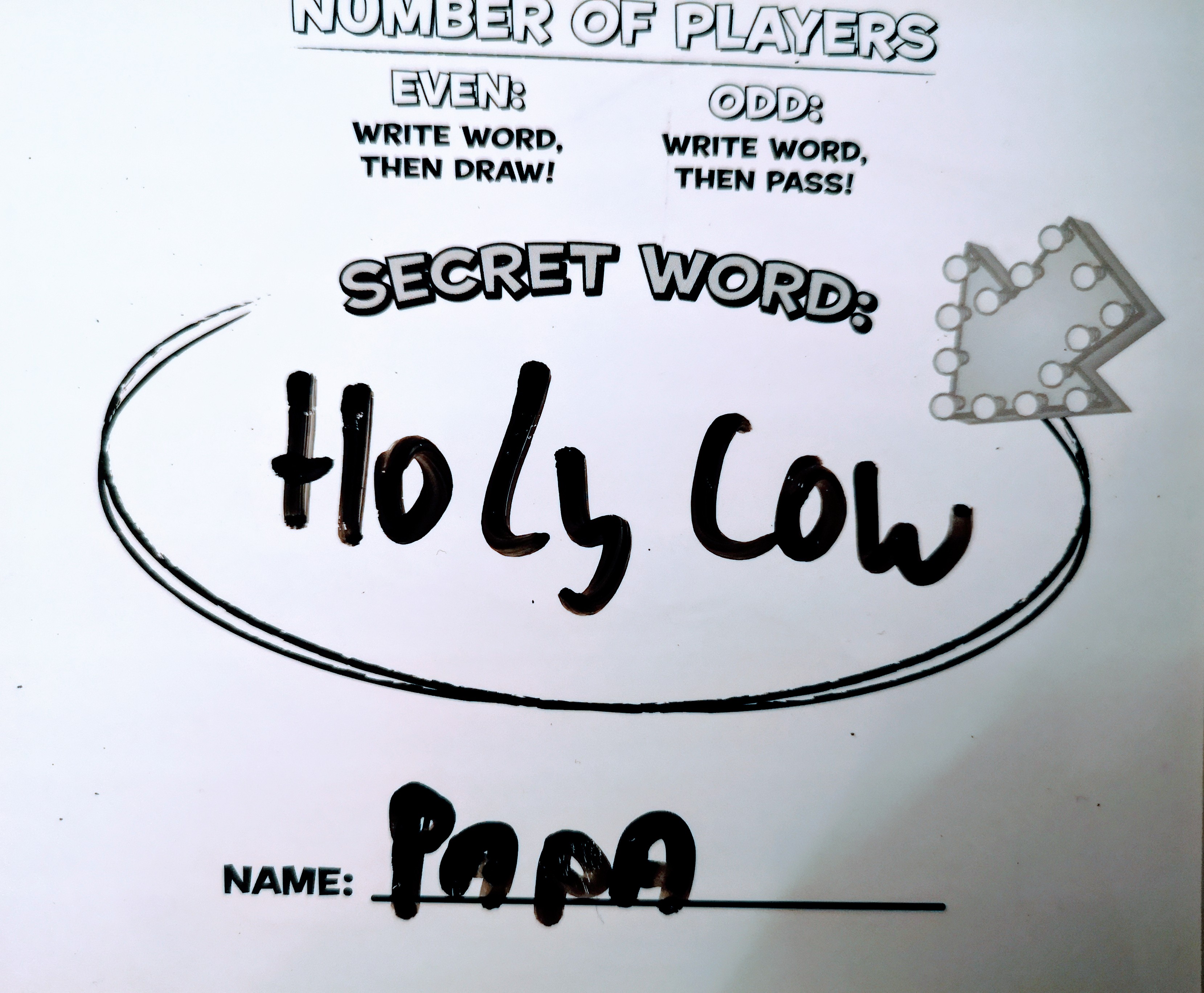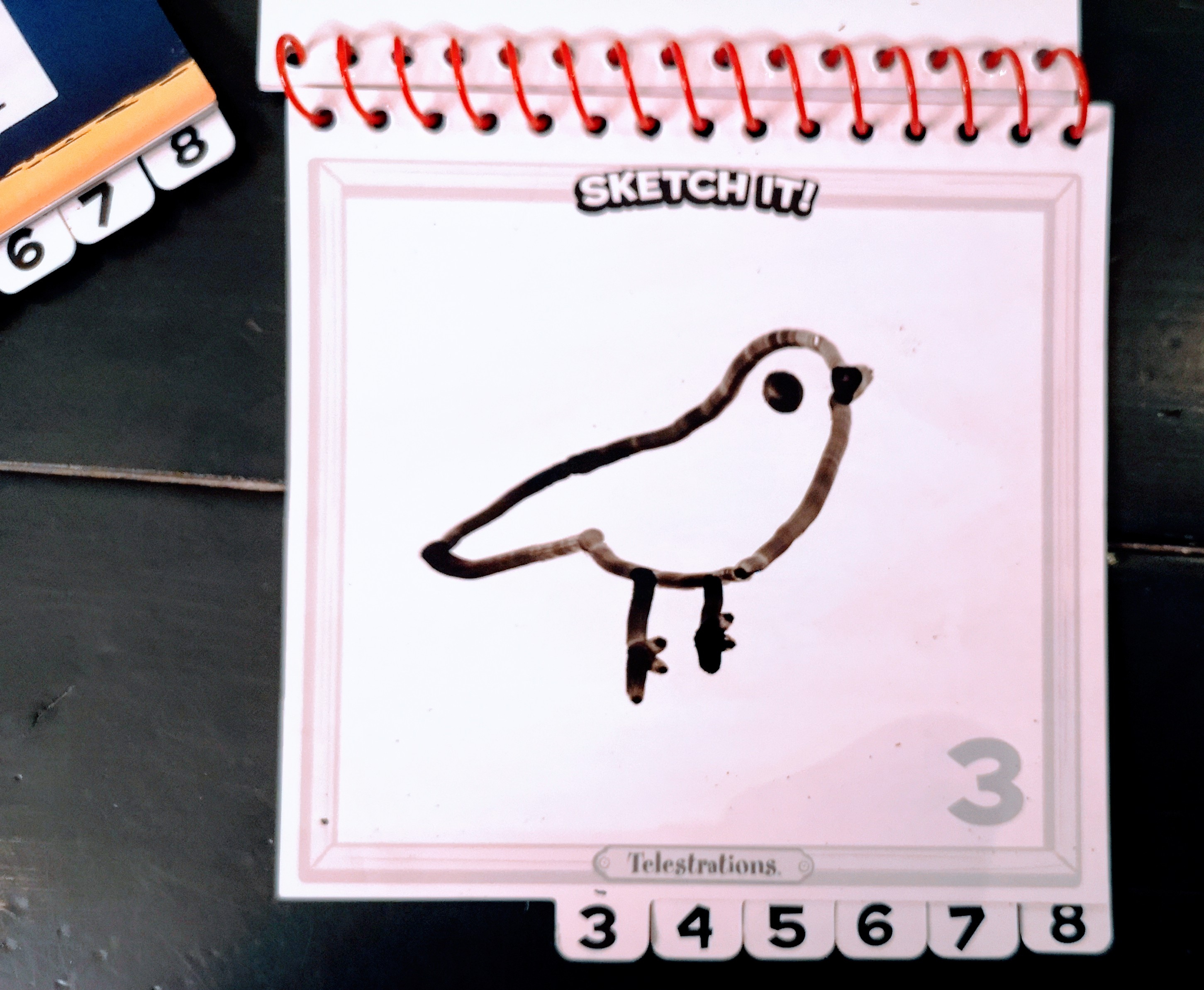 One of our favorite games to play together is Telestrations, a version of the telephone game where players illustrate a word and pass it on for the next player to guess what they drew and write the guess down. The following player illustrates that guess and passes the illustrations to their neighbor and so on, until the sketchbook makes a full circle and returns to the player who came up with the original word. Four to eight players can take part, so there’re four to eight sketchbooks circulating simultaneously. Most of the time, the final guess is not the same as the original word but bears some resemblance to it in this way or another, almost always hilarious. I don’t remember us ever laughing that hard, literally until our abdominal muscles hurt.