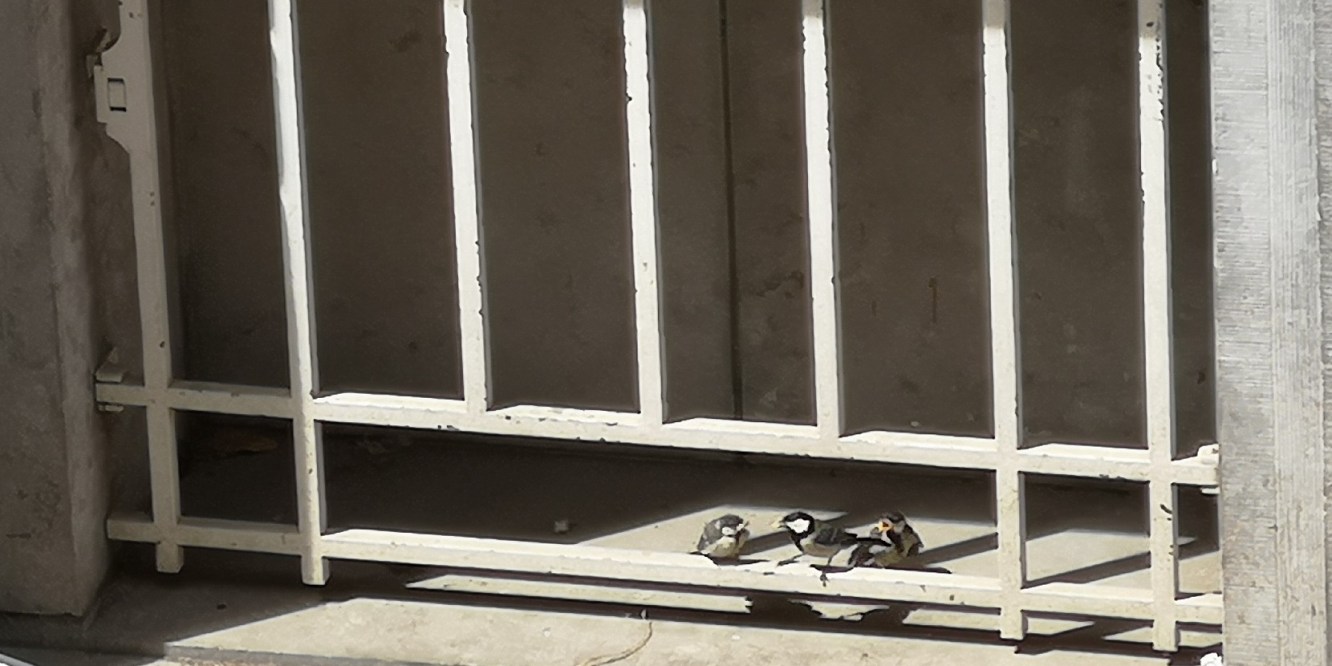 That whole day everyone in our street helped guarding the little tits (I’m sorry but who comes up with bird names in English?) as their mother (or maybe their father, as Simon remarked) kept in constant contact with them and rushed to the ground every ten minutes or so to stuff their beaks with yummy treats (like bouquets of caterpillars she miraculously produced from in between the stones of the building facade). She called them melodically, singing several tunes in a row and they responded in a more monotonous, begging tone.
