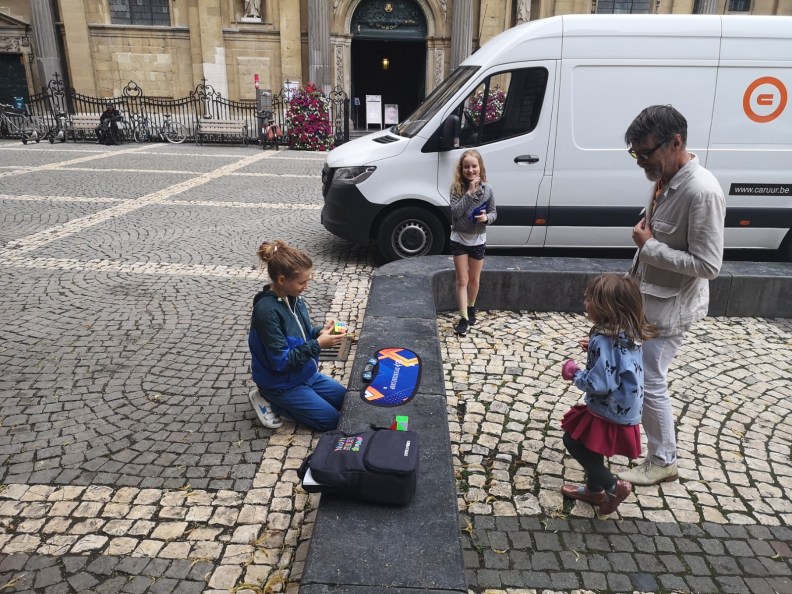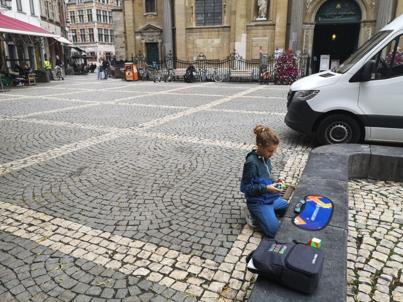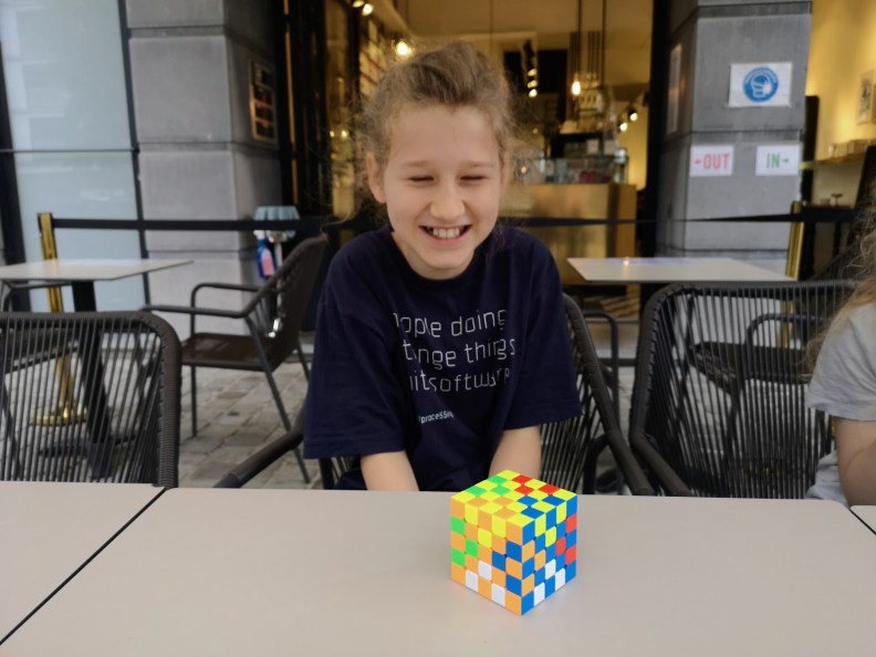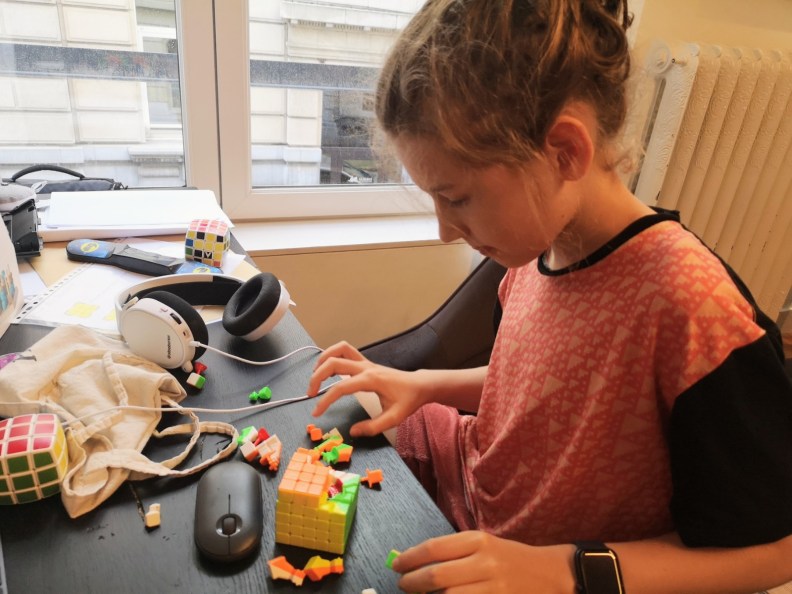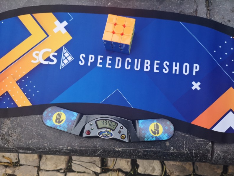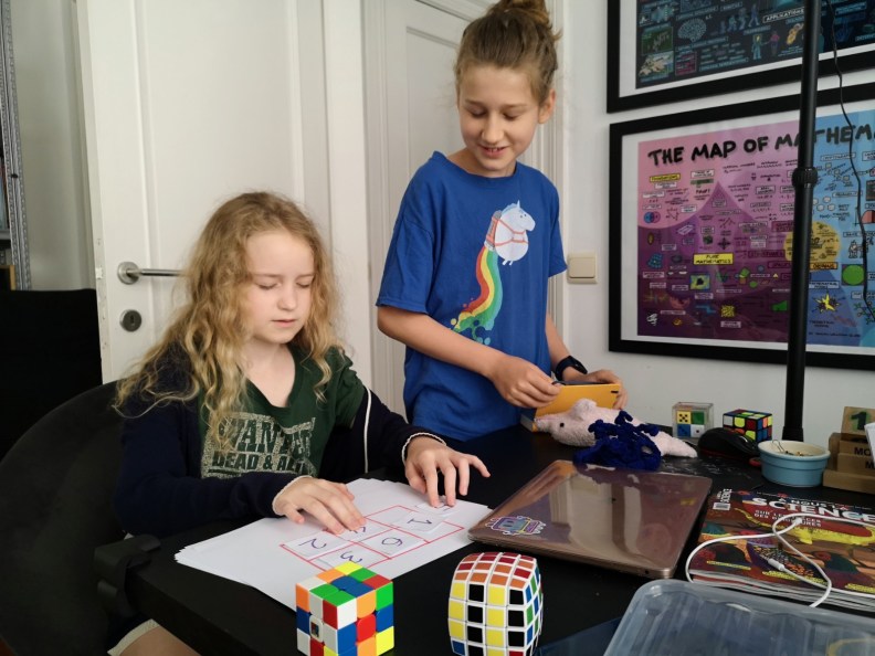 We have also discovered that setting up a cubing station outside can be quite entertaining. Simon’s current PB on a 3×3 is just above 43 seconds: