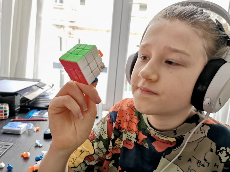 What Simon seems to be enjoying most is not so much improving his speed as challenging himself with new ways to solve puzzles and new puzzles to solve. A second batch with more difficult puzzles is on its way from the SpeedCubeShop. While he is waiting for those, Simon is teaching himself to solve the 3×3 blindfolded, which is a very different method involving memorizing letter sequences.