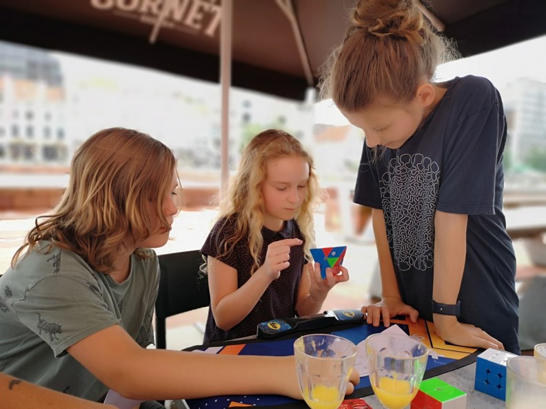 This weekend we had Simon’s best irl friend visiting from Amsterdam. I’m afraid he caught the cubing bug from Simon 🤪 Below are a couple shots of them speed solving the Pyraminx in scenic places: