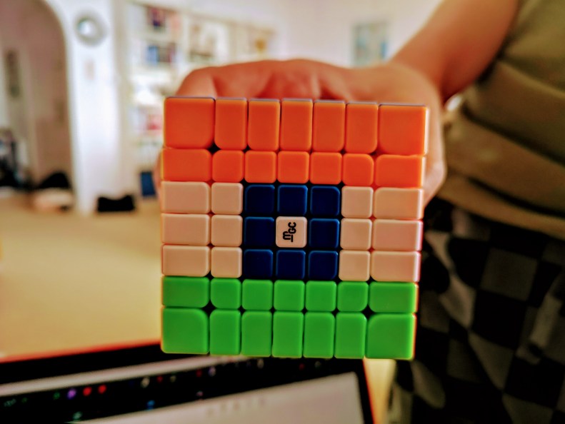 (the bot gives them drawings of flags and they have to guess the country). This is Simon’s cube version of the flag of India!