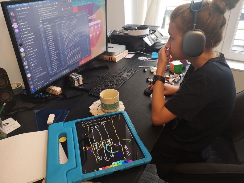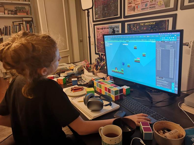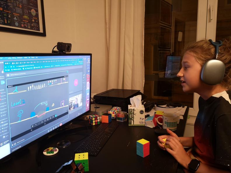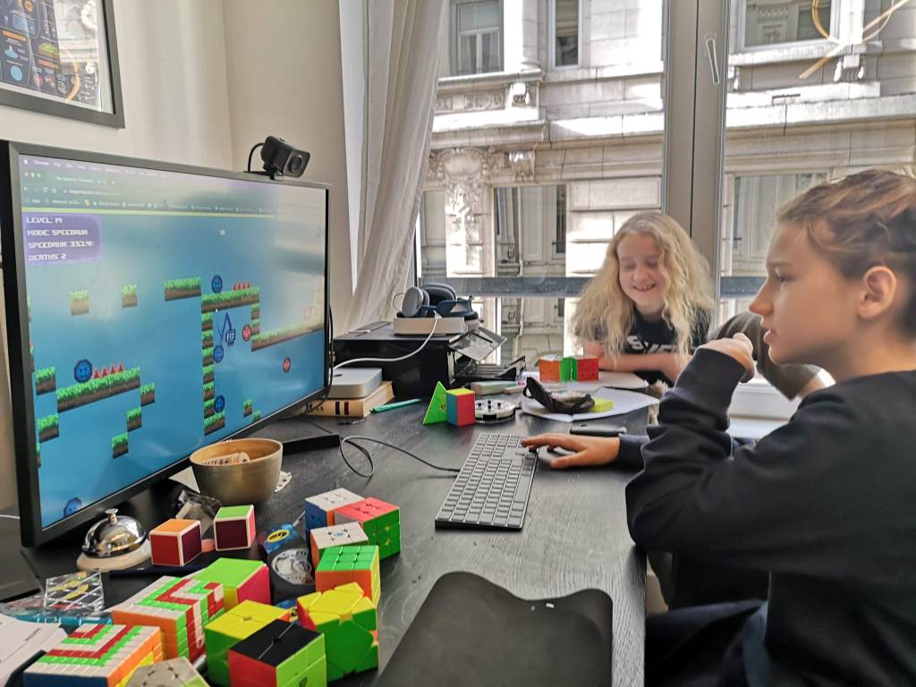 I have kept quiet for almost two months. First of all, because the kids asked me to keep this whole thing a big secret. Secondly, because we have been down with covid and it hit me hard, even though fully vaccinated. Now that the big secret is out on Simon’s YouTube channel and I’m feeling better, I can share the beautiful process I have been lucky to witness here over the past several weeks: the kids came up with, designed, coded and published their first game! 🚀