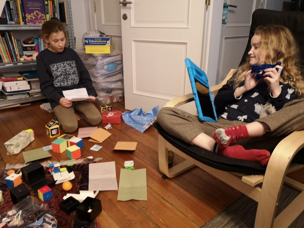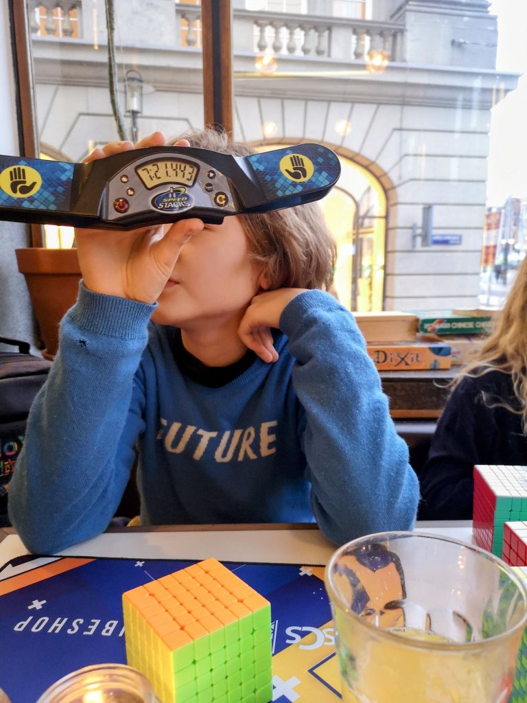 Simon’s first real World Cube Association competition got cancelled because of the covid-19 regs tightening again in The Netherlands. On the upside, he got more cubes for St.Nicholas Eve. Neva got a smart cube. Its app has a built-in timer, scrambles and many fun games.