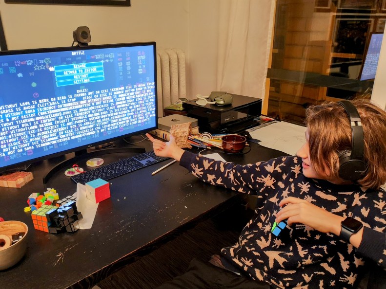 Simon has succeeded in making a playable game using another game as a programming language. He created a clone of Fight using Baba Is You, currently one of his favorite puzzle games he spends hours exploring every day. Baba Is You is an award-winning puzzle game where the specified character can reach a goal by following “rules”, simple English sentences defining what various objects in the game do. The player can interchange the predicate nouns in the sentences, as long as the general syntax remains the same, thus changing the rules to make it possible to reach the goal. This makes the game very abstract and suitable for use as a programming language of its own kind. In fact, Baba Is You is Turing complete, i.e. can be used as any basic computer to make computations and write programs.